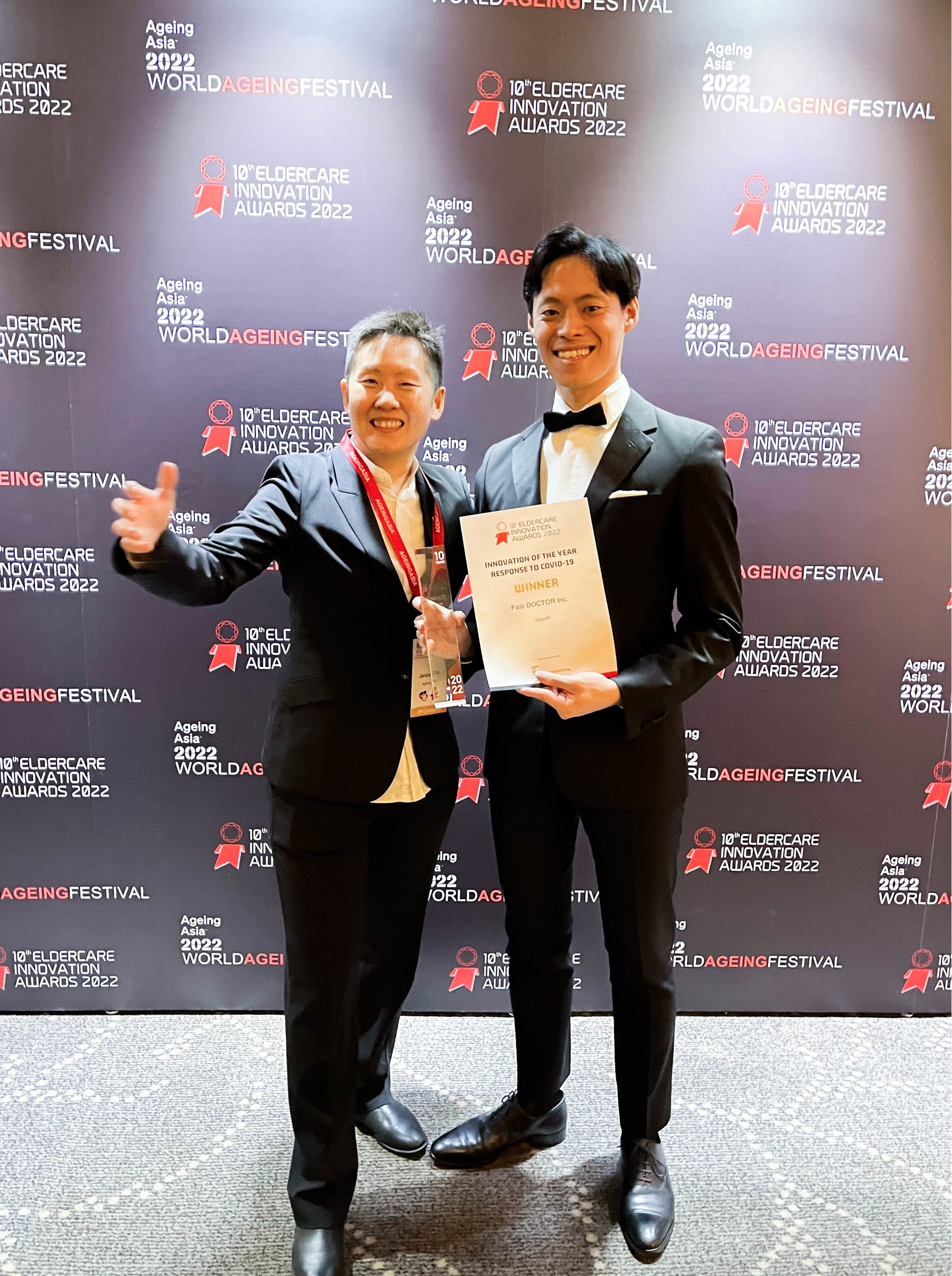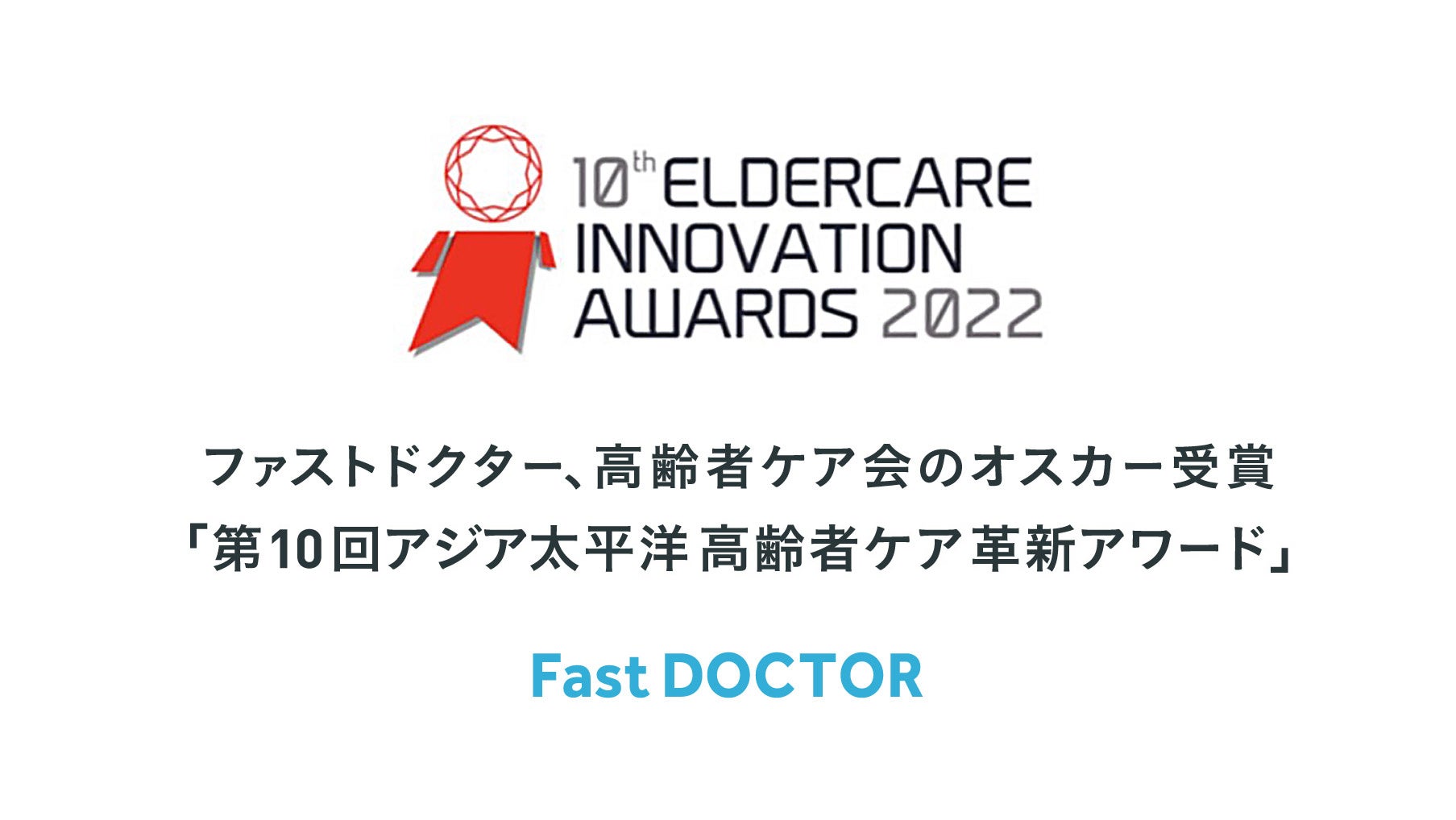 ファストドクター株式会社(本社:東京都港区、代表取締役医師:菊池 亮、代表取締役:水野 敬志)は、2022年5月23日から27日にシンガポールで開催された第10回アジア太平洋高齢者ケア革新アワード(The10th Asia Eldercare Innovation Awards、以下、「本アワード」)において、「INNOVATION OF THE YEAR - RESPONSE TO COVID-19」部門で最優秀賞を受賞しましたのでお知らせします。