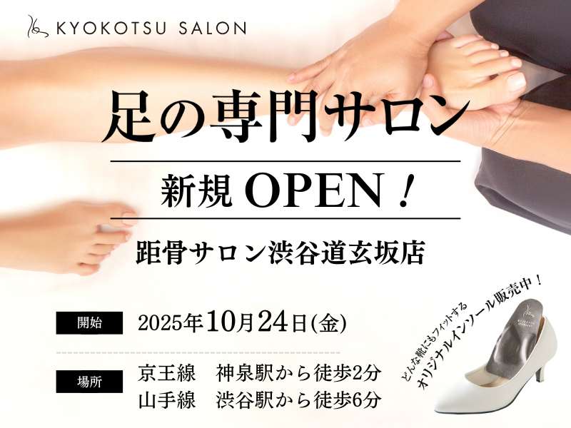 SNSで話題の足の専門サロン「距骨サロン渋谷道玄坂店」が2025年10月24日(金)、東京都渋谷エリアに新規オープンいたします。