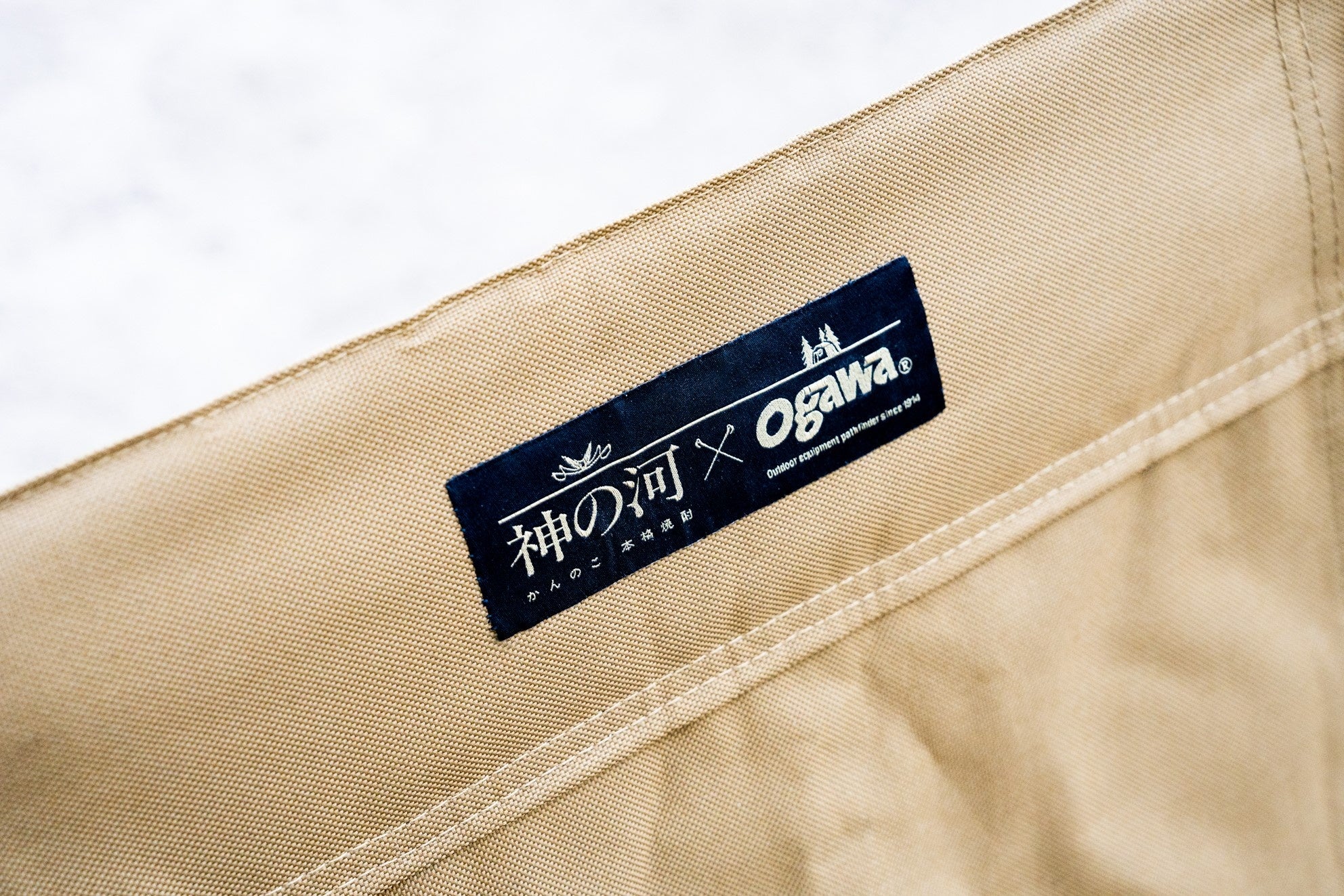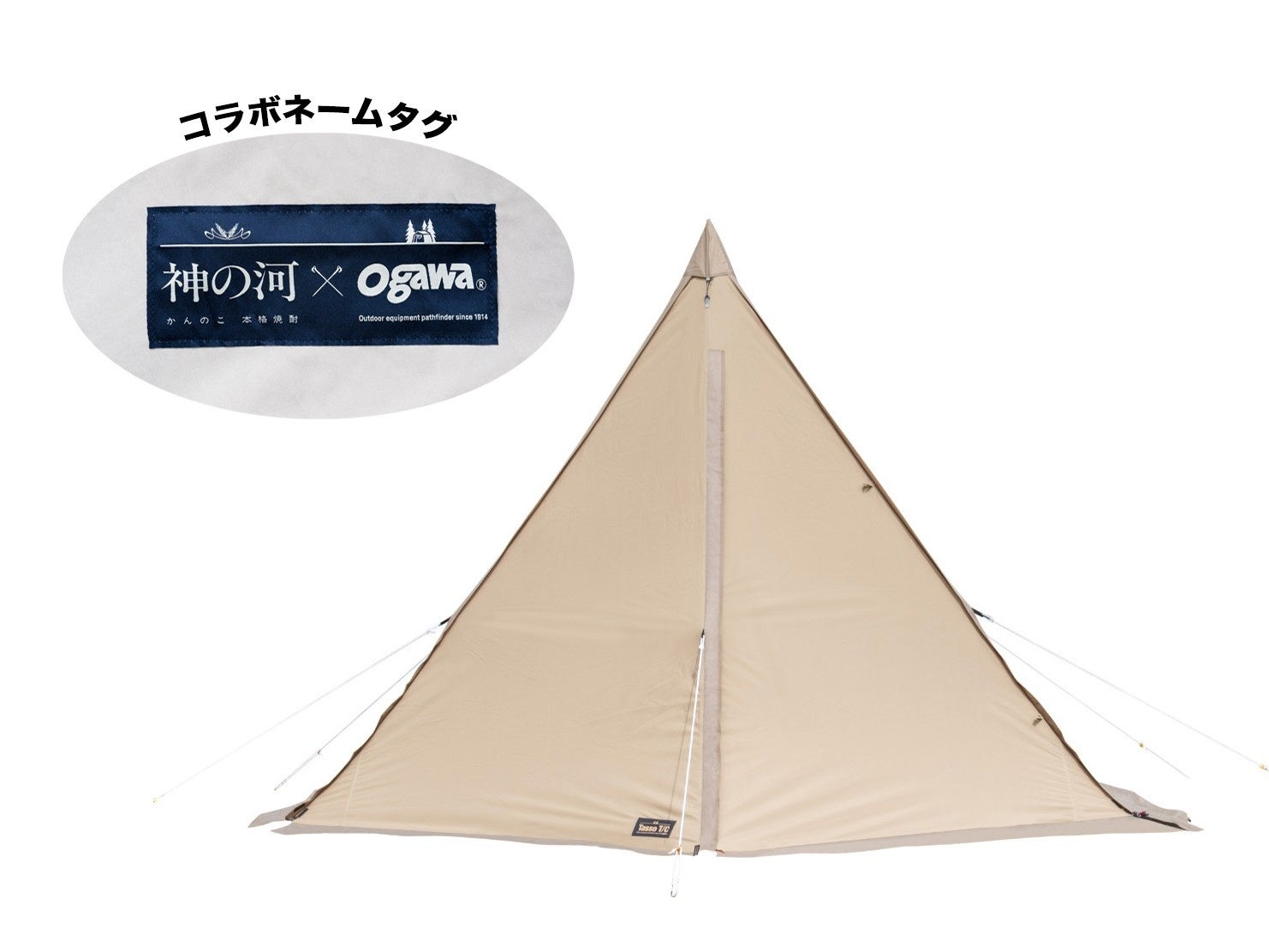ogawaの人気テント「タッソT/C」に、神の河×ogawaの限定ダブルネームタグがついたコラボレーションテント。