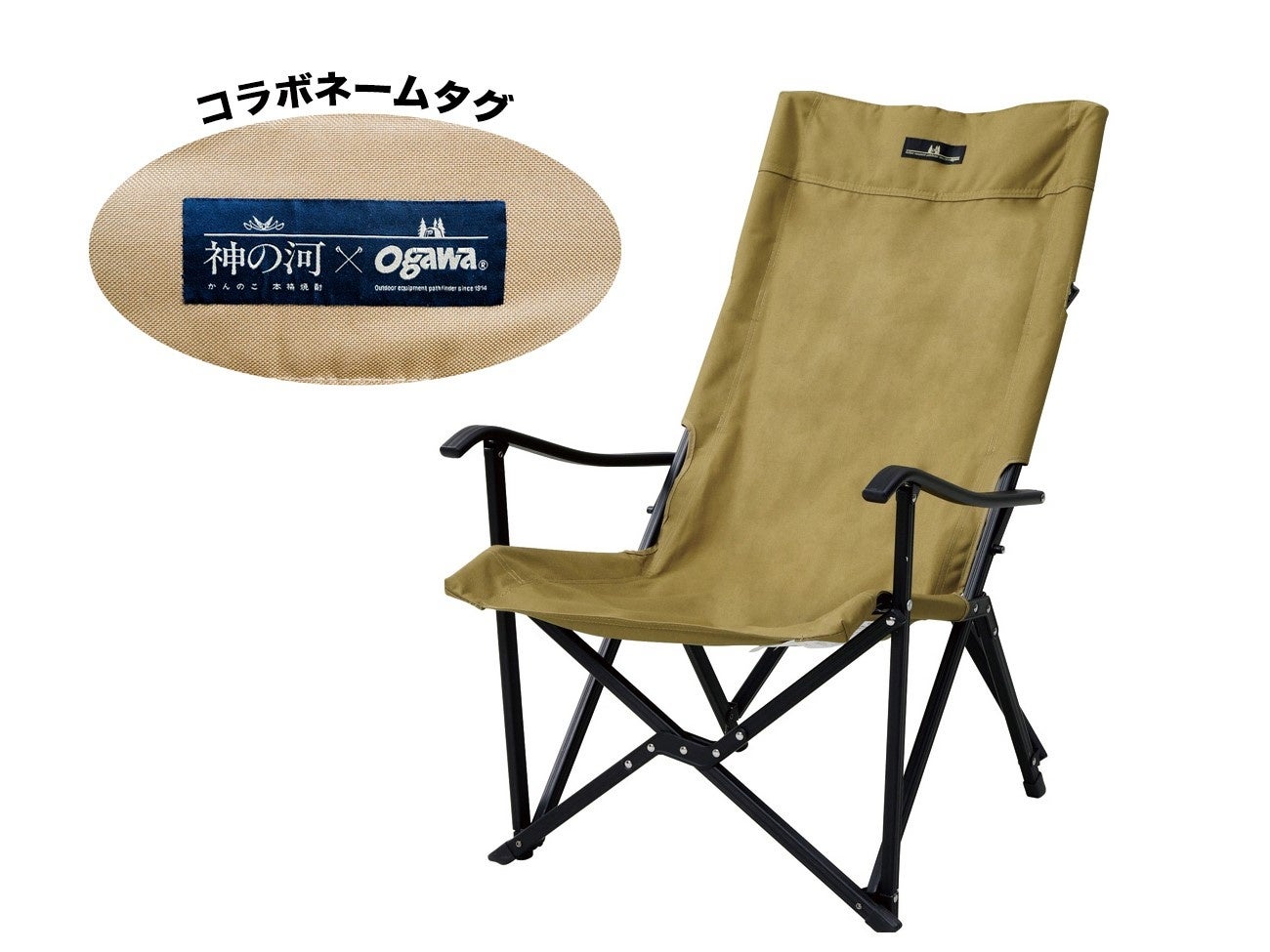 ogawaの「リラックスチェア」に、神の河×ogawaの限定ダブルネームタグがついたコラボレーションチェア。