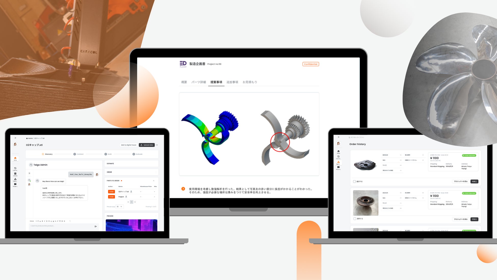 現在、弊社3DPCの既存顧客によるTAIGAの使用は進んでおり、防衛や重工業界などの分野から現時点で20種類以上もの供給元を失った部品の復元依頼を頂戴しています。また、少量生産は、プロペラやインペラなどの製造を含む依頼も30件以上受注しています。実際に使用いただいた既存顧客からは、「通常、メールで行う連絡やデータの送受信がTAIGAのプラットフォーム内で完結・一覧化されるので、やり取りした3Dデータや見積もりが、一目で管理できて使いやすい」「自力では解決できなかった詳細な製造プロセスの具体的なアドバイスをエンジニアの⽅々からいただき、開発から製作へと無事辿り着くことができた。納品までのコミュニケーションをTAIGA上で図ったが、プロジェクトメンバー内での情報共有などが簡潔にできてよかった」といった声をいただいています。