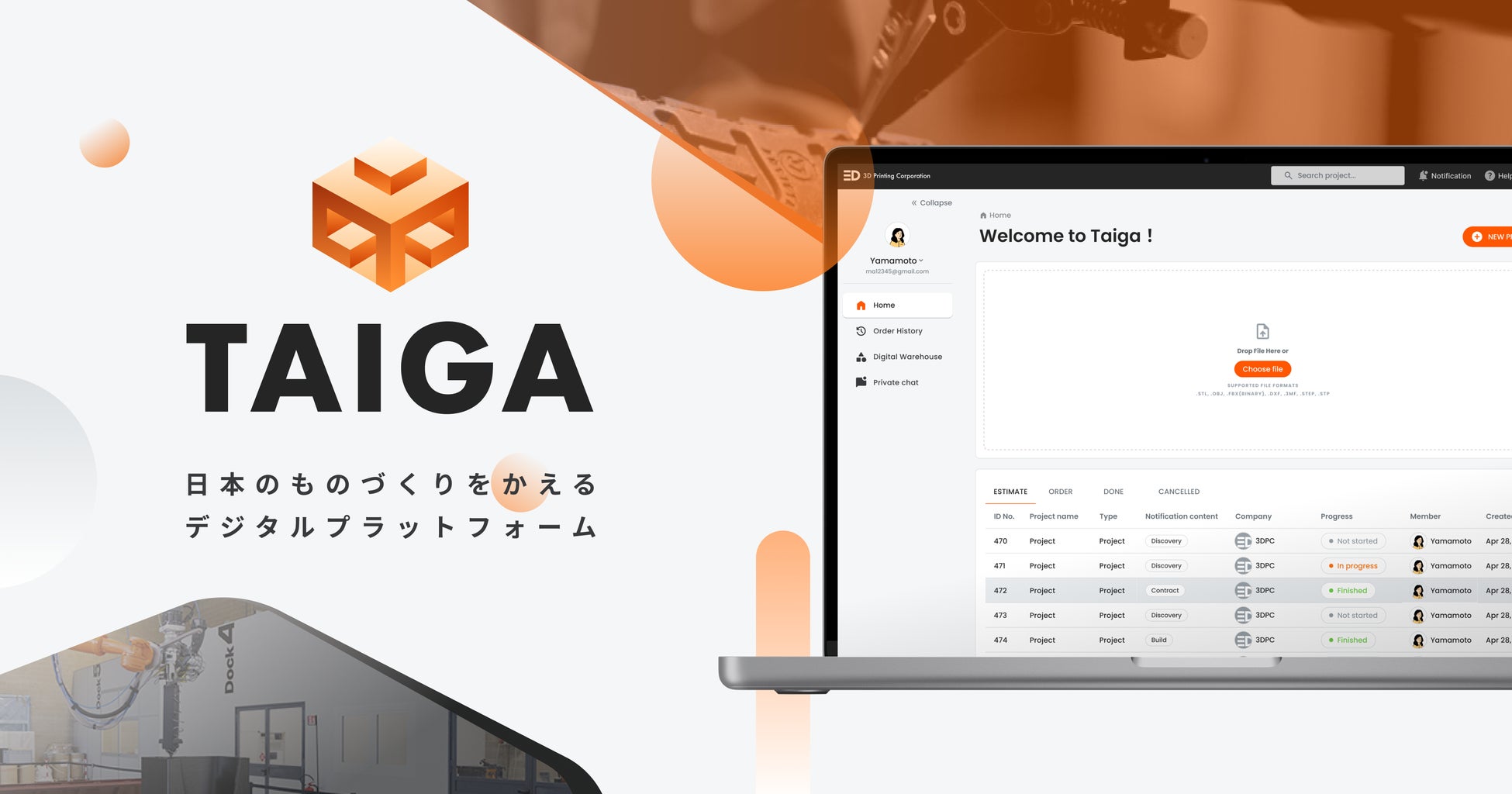 株式会社3D Printing Corporation(本社:神奈川県横浜市、代表取締役:デヴォア・アレキサンダー、以下「3DPC」)は、ユーザーとサプライヤーを繋ぎ日本のものづくりを変革するデジタル製造プラットフォーム「TAIGA」をリリースしたことを発表いたします。