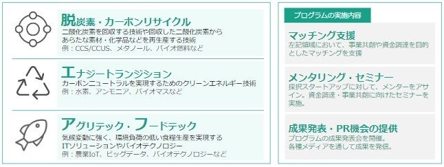 Y Combinator卒業スタートアップ企業やCOP28参加スタートアップ企業を含む15社を欧州・米国・中東・アジアから採択。パートナーとなる国内事業会社6社と連携し、事業共創を実現