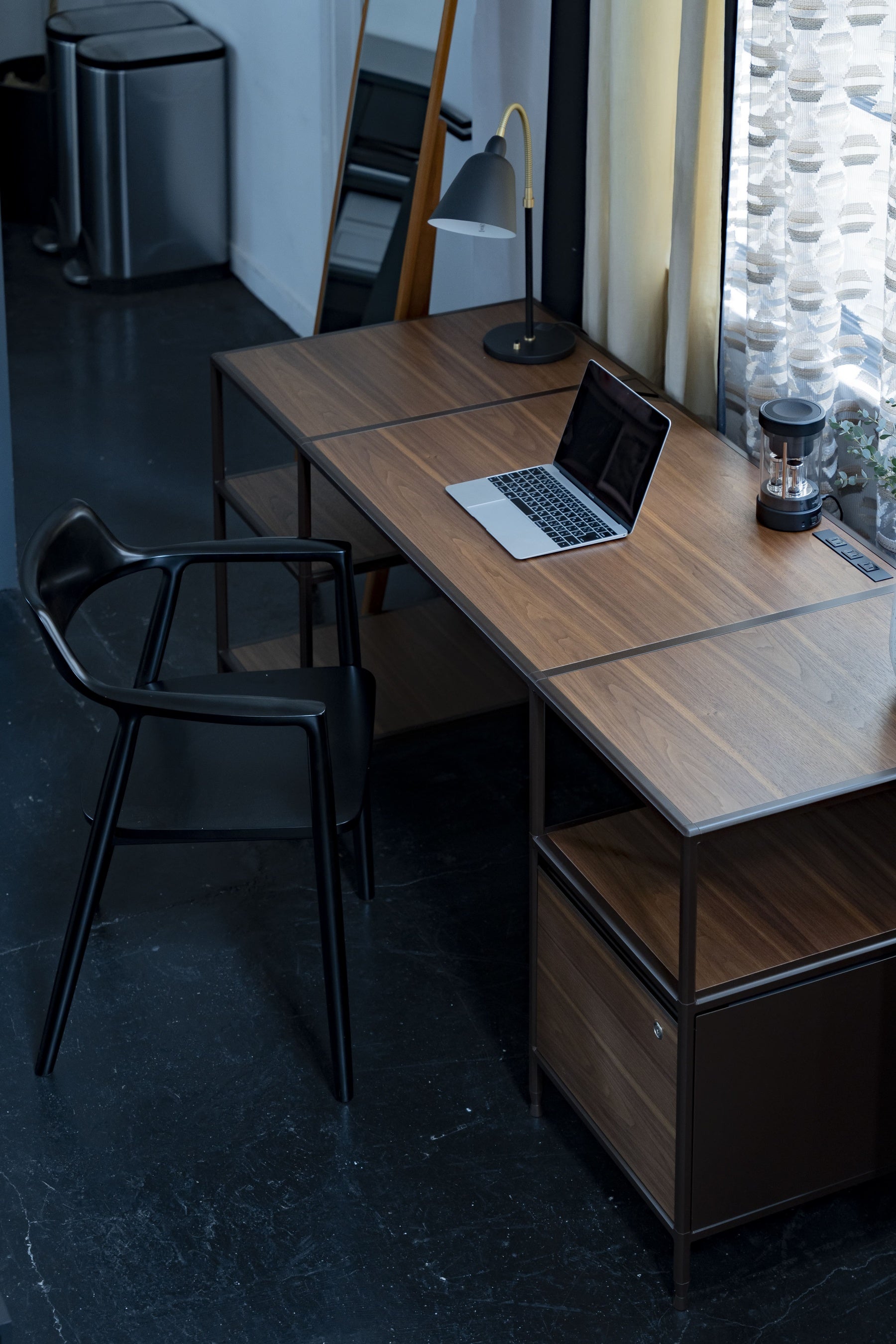 様々な長さのフレームを組み合わせ、板材や引き出しなどを組み込み、シェルフやデスク、リビングテーブルなど多種多様な形状を作ることができる家具の総称です。