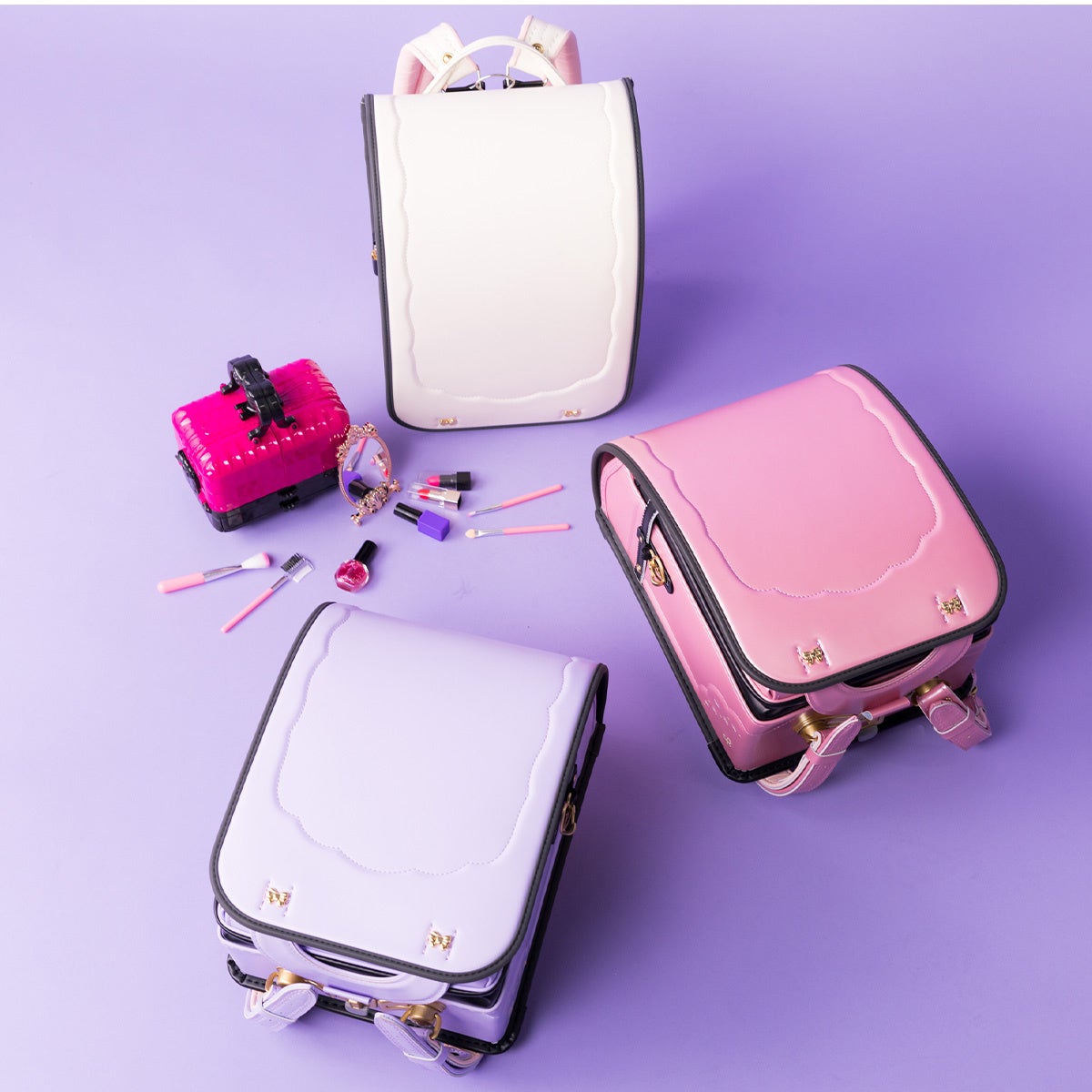 フィットちゃん初の立体リボンかつ、取り外し可能なカスタマイズランドセル「シェルール」。新色の「キャンディピンク」のほか、フィットちゃん初のかわいいデザインを取り入れた「クロ」などさまざまな選択肢を用意。