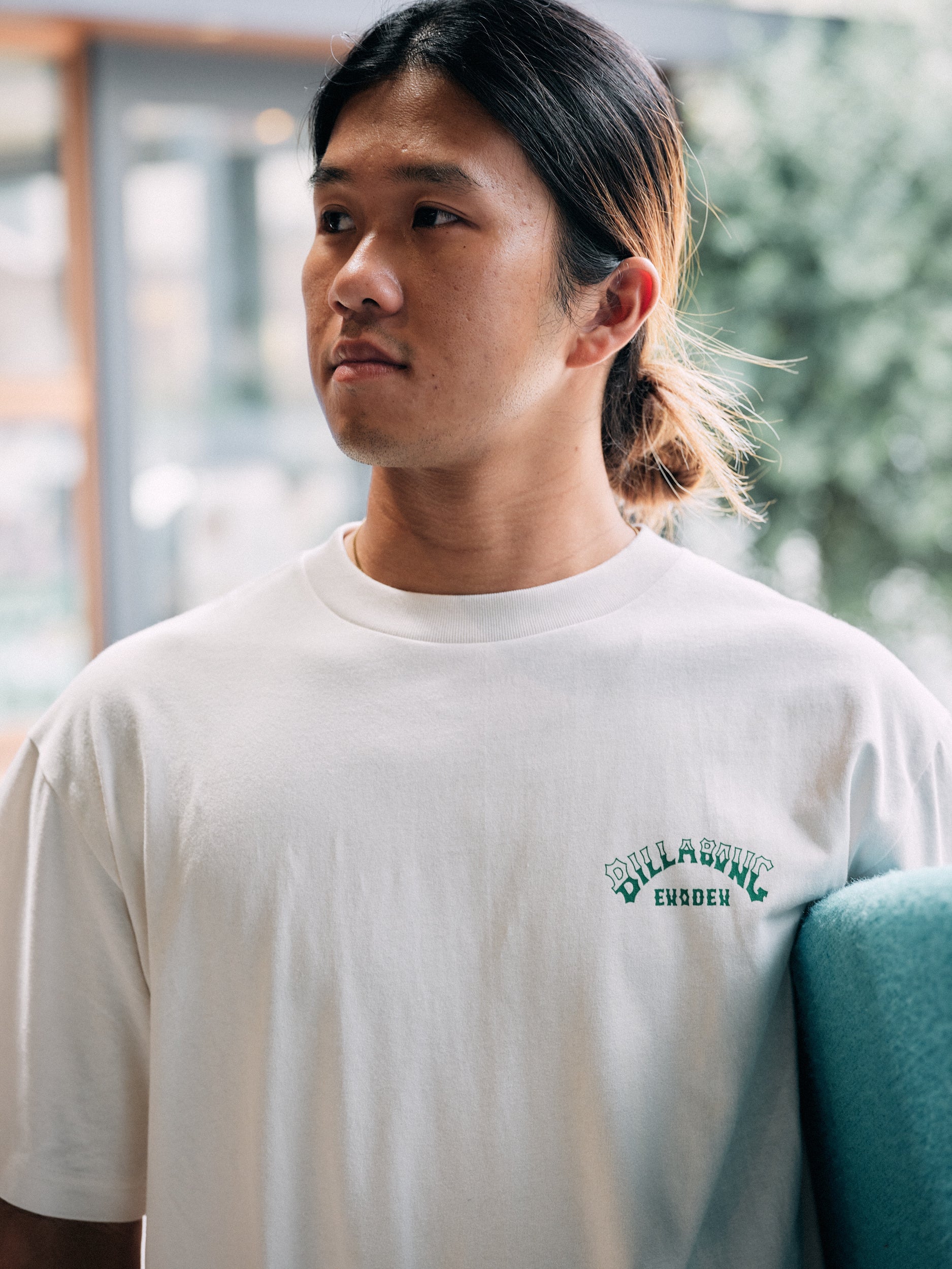 江ノ電の車体をモチーフとしたデザインとBILLABONG総柄のHERITAGEロゴを組み合わせた特別コラボの数量限定モデル。水や農薬を必要な場所にのみ散布し、環境を考慮したUSAコットンを使用し、通気性・保湿に優れ毛羽が少ないのが特徴。シルエットは今トレンドのゆとりのあるオーバーフィット。