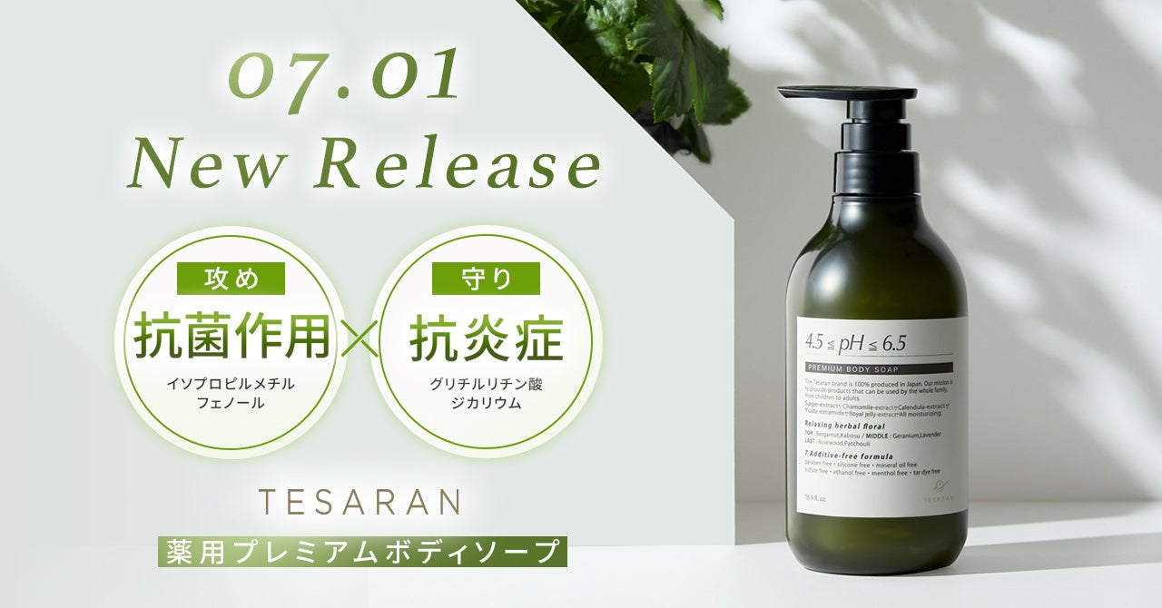 テサランシリーズ初のインバスアイテム、「テサラン 薬用プレミアムボディソープ」。
