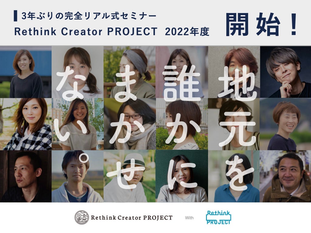 プロフェッショナル人財の育成を通じて、クリエイターに新たな働き方を提案する株式会社クリエイターズマッチ(本社:東京都渋谷区、代表取締役:呉京樹、以下、「クリエイターズマッチ」)が主催する『Rethink Creator PROJECT』は、「Rethink PROJECT」の協賛のもと2018年より続く本取り組みの開催を決定しました。5年目となる2022年の地域セミナーは、本取り組みに共感して頂いた全国各地の自治体の後援を受け、6月16日より富山市からスタートします。