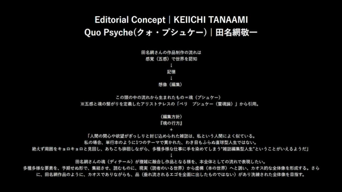ここでしか知ることのできない『Quo Psyche』制作の舞台裏をとおして、田名網氏が作品を生み出すための「創造性」「思考の過程」「 クオリティーへの計り知れないこだわり」や、同氏が感じていたであろう、まだ見ぬ書籍の可能性について、みなさまと一緒に考える有意義な機会になれば幸いです。