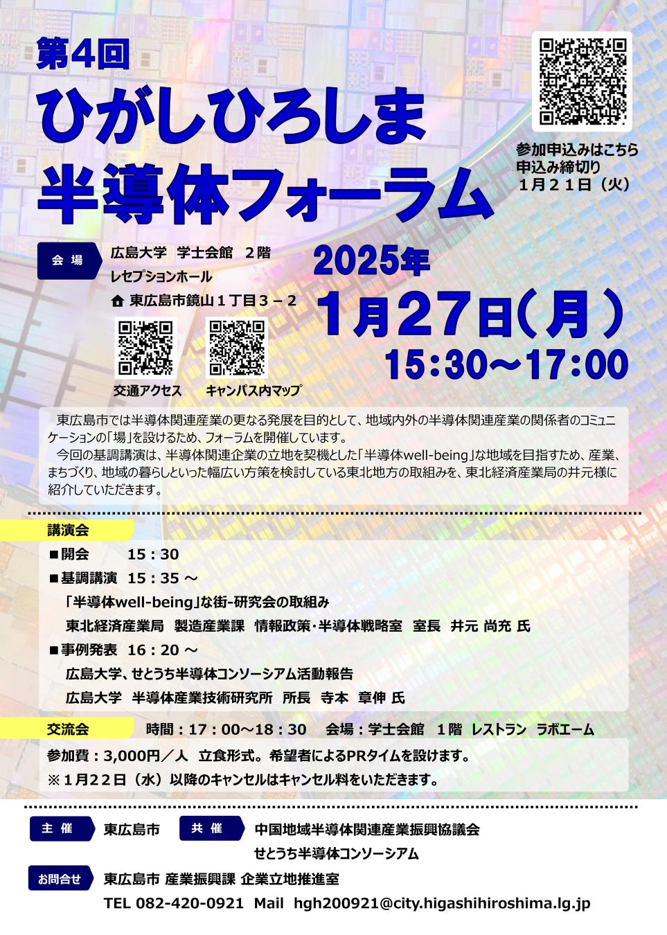 【東広島市】ひがしひろしま半導体フォーラムを開催します⚙