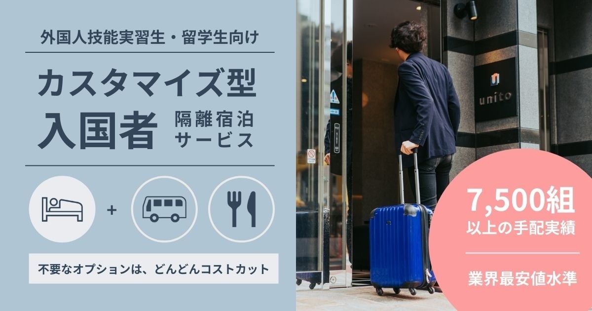 これまで、7,500組以上の帰国者および、入国者の待機施設を手配してきた株式会社Unito(東京都千代田区、代表取締役:近藤佑太朗、以下ユニット)は、この度、外国人技能実習生・留学生向け「入国者隔離宿泊サービス」を、カスタマイズ型のサービスにアップデートしたことをお知らせします。