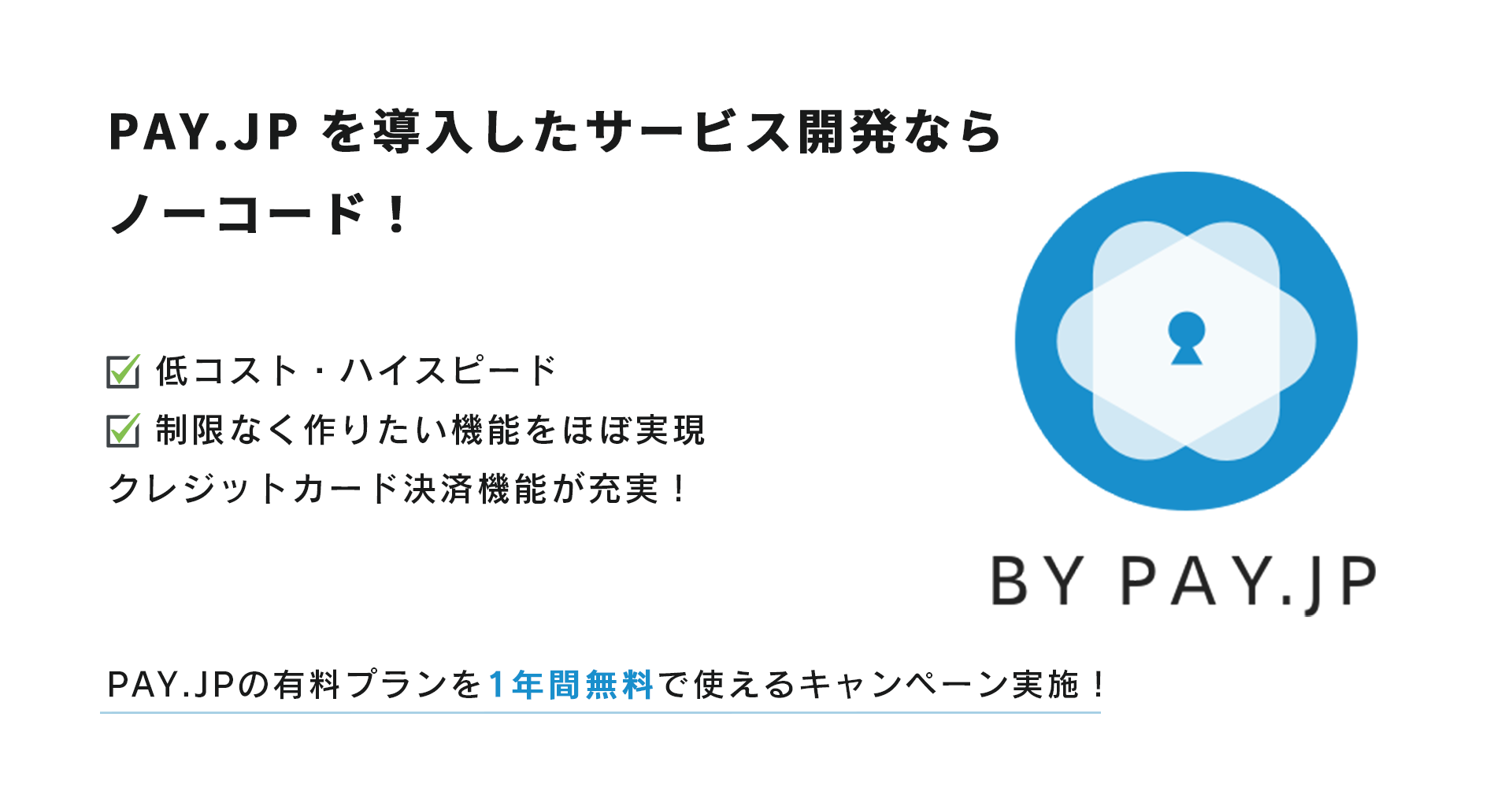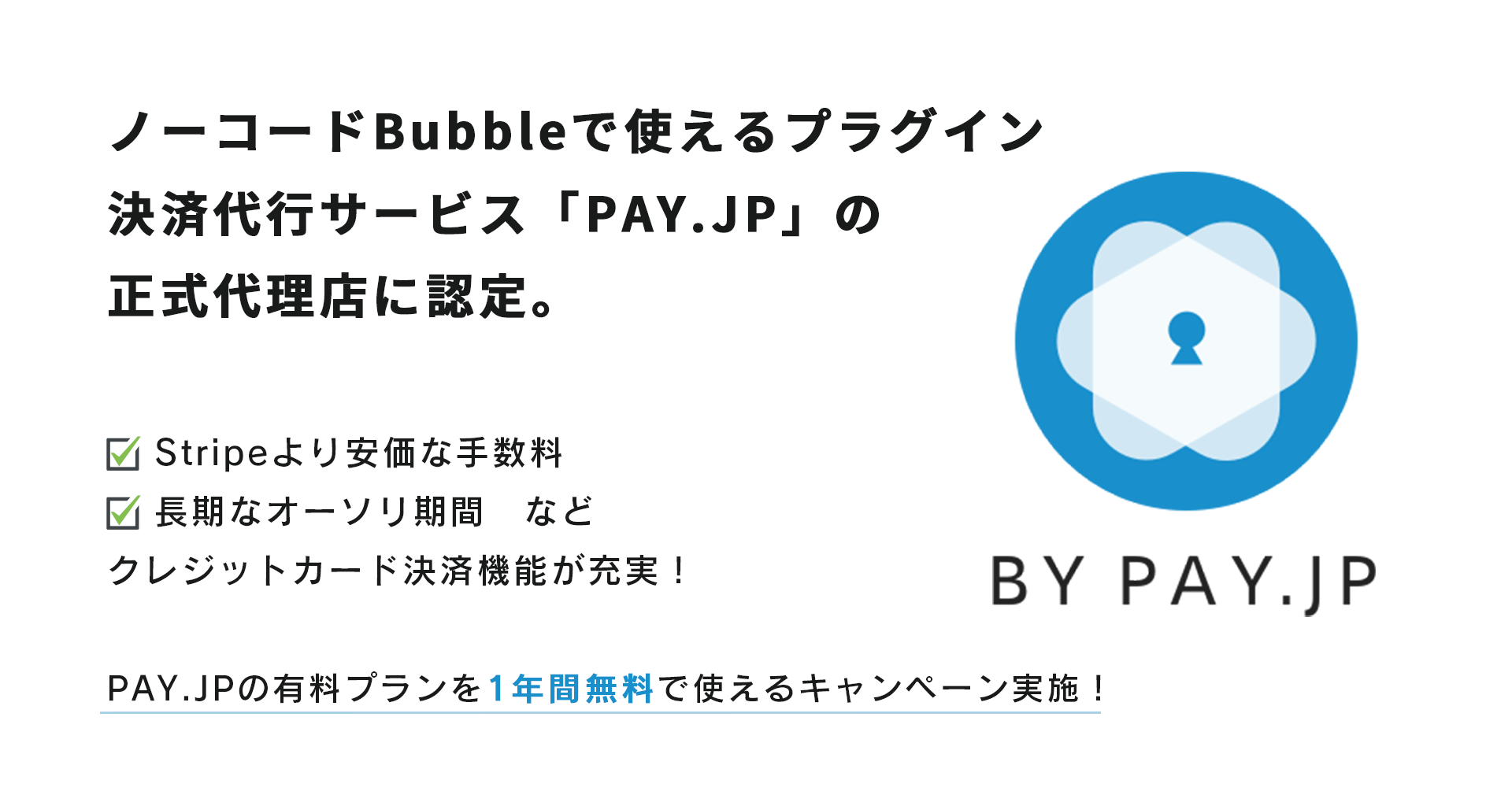 ノーコードBubbleで使えるプラグイン、決済代行サービス「PAY.JP」の正式代理店に認定。PAY.JPの有料プランを1年間無料で使えるキャンペーン実施!