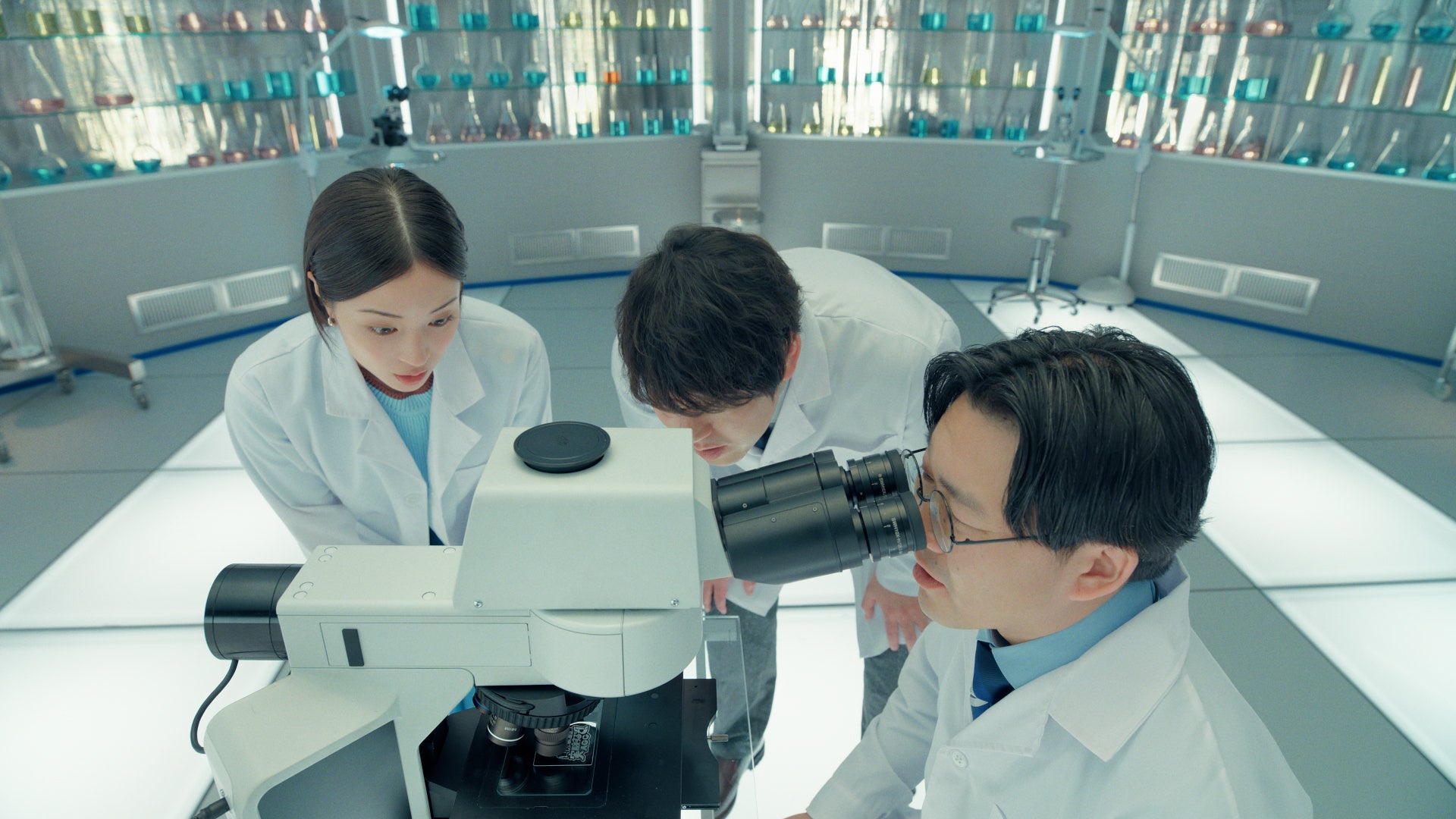 クールな研究者とにぎやかな助手たち。三人の抜群のチームワークとともに常に笑いあふれる撮影現場となりました。コミカルでテンポ感あふれる新TV-CMに、ぜひご注目ください!