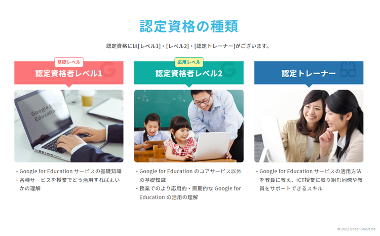 Google が発行する教員向けの認定資格です。Google for Education の各種サービスの基礎知識や、授業における具体的な活用方法についての理解度を証明することができます。
