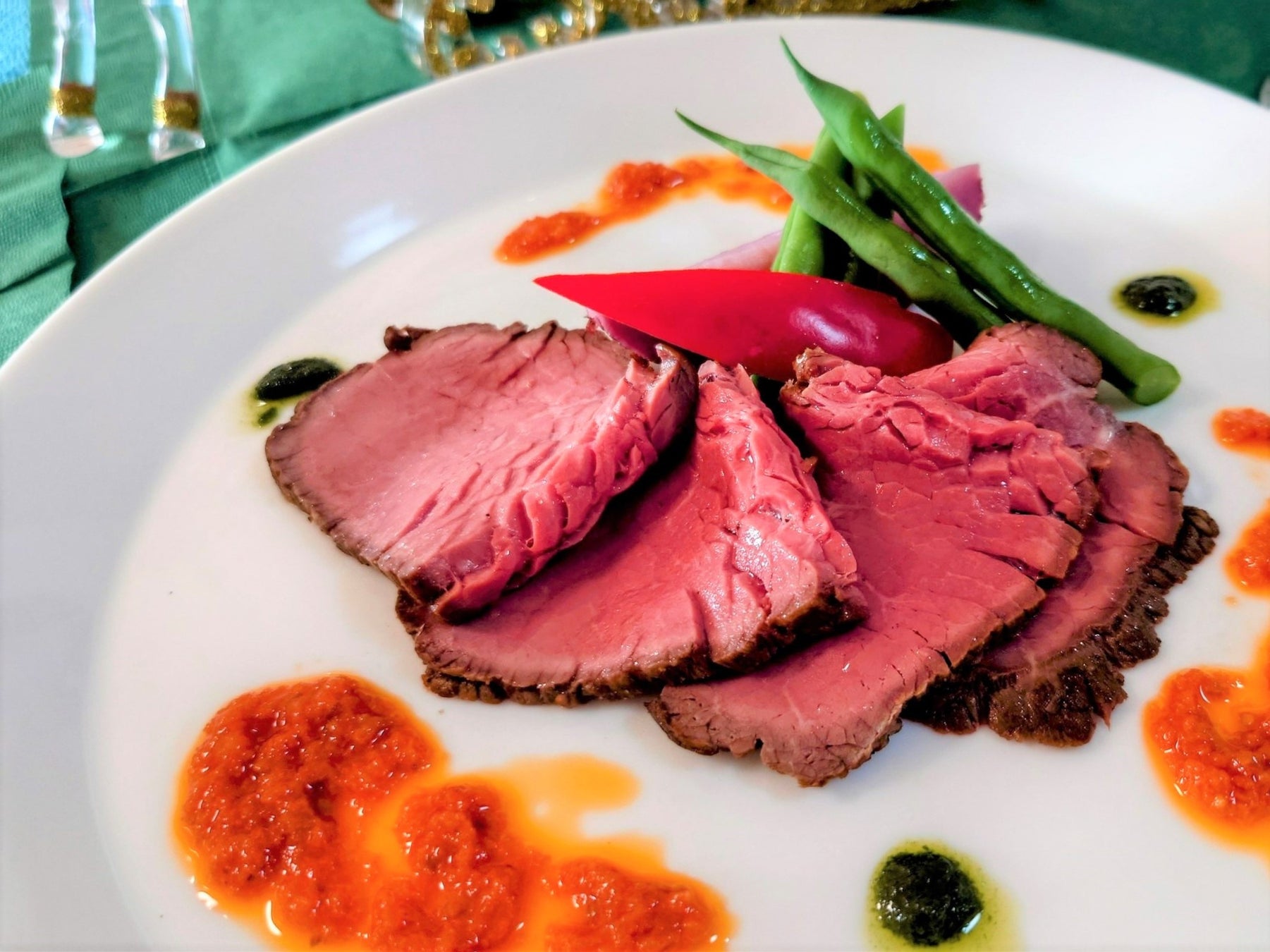 メニュー : クリスマス特別オードブル、国産牛の自家製ローストビーフ、ガトーオペラ