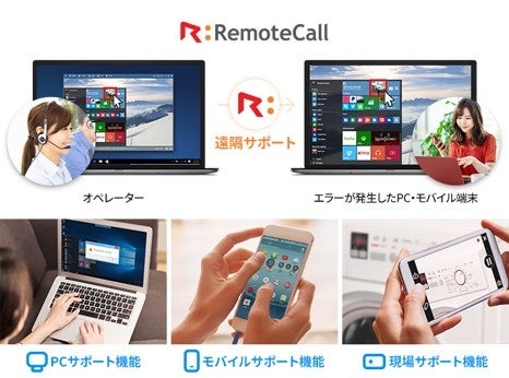 RemoteCallは遠隔地のパソコンやモバイル端末にリモート接続して、直接問題を解決することのできるサービスです。お客様が6桁の接続コードを入力すればリモートサポートがスタートし、複雑な設定や操作無しで、トラブルが発生した端末側の画面やカメラ映像をオペレーターに共有し、すぐにサポートを受けることができます。問題解決にかかる時間とコスト、労力を大幅に削減可能にし、企業のお客様サポートや社内のITヘルプデスクに最適です。