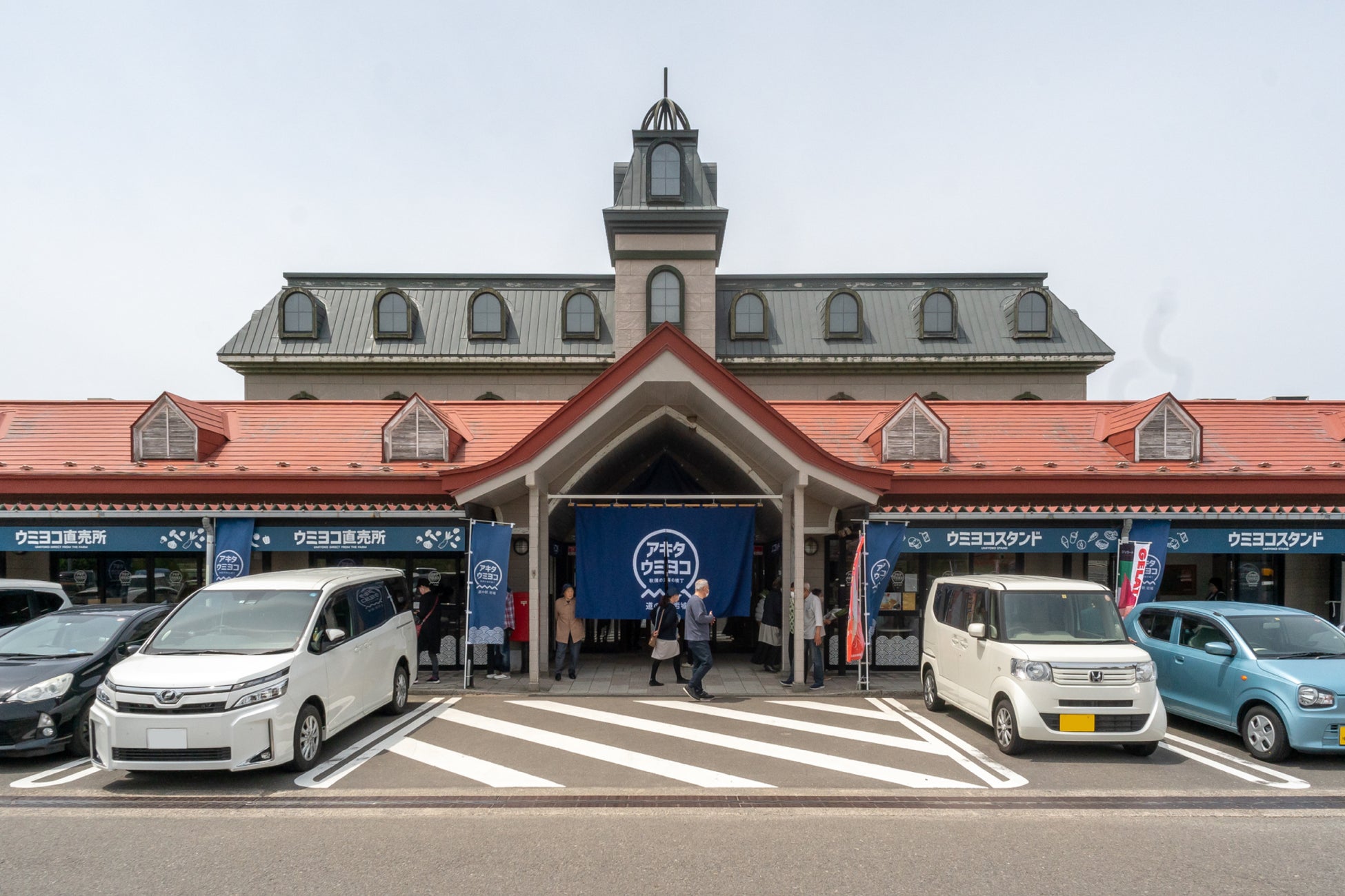 道の駅岩城は、2023年4月に秋田ノーザンハピネッツが運営を引き継ぎ、リニューアルオープンしました。「海の横丁」をテーマに、観光客や地元の方々が気軽に立ち寄れる施設を目指しています。施設内には、地元の新鮮な野菜や特産品を取り揃えた「ウミヨコ直売所」や「ウミヨコ商店」、秋田県産の魚や秋田由利牛などの地元食材を使った料理を楽しめる「岩城ウミヨコ食堂」があります。また、日本海を眺めながら入浴できる天然温泉「岩城温泉 港の湯」やキャンプ場も併設されており、ご家族で訪れて1日楽しめる道の駅です。