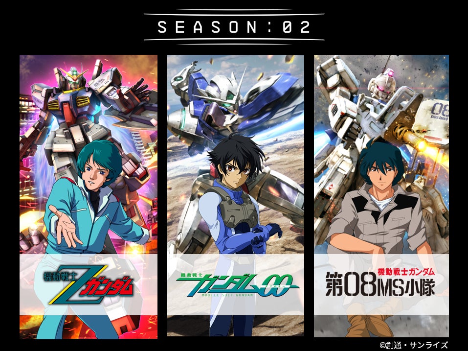 2022年5月26日(木)にリリースされる〈SEASON:02〉では以下の3作品を中心としたカードがラインナップします。ガンダムシリーズの様々なタイトルから参戦するモビルスーツ、パイロットを使ってゲームをプレイしていただけます。