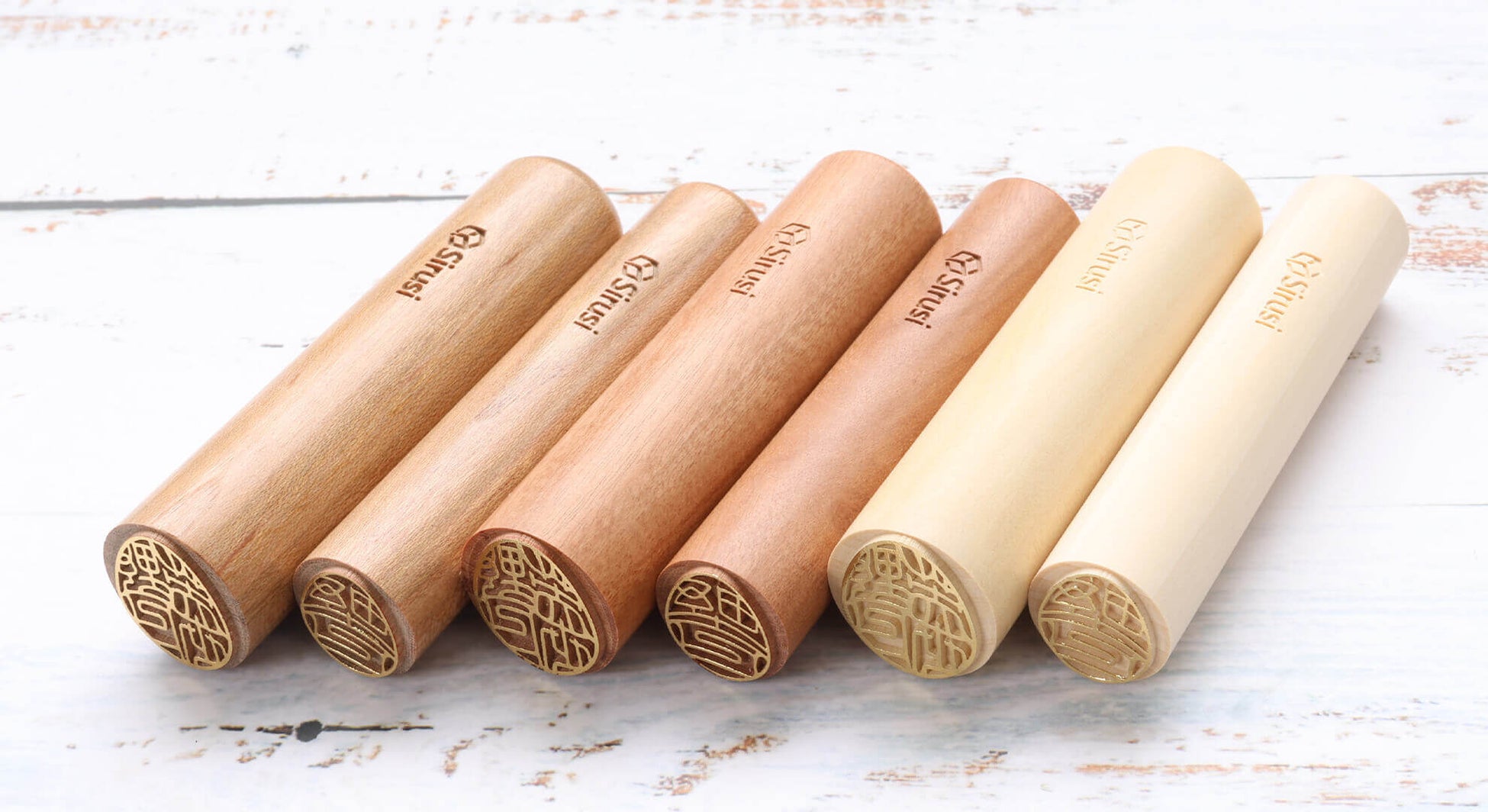エコロジカルな背景から生まれた天然木材を加工し、ハンコ材として使用。ヤマザクラの木、ナツメの木、アカネの木などをランナップ。実印や銀行印としてご利用いただけます。