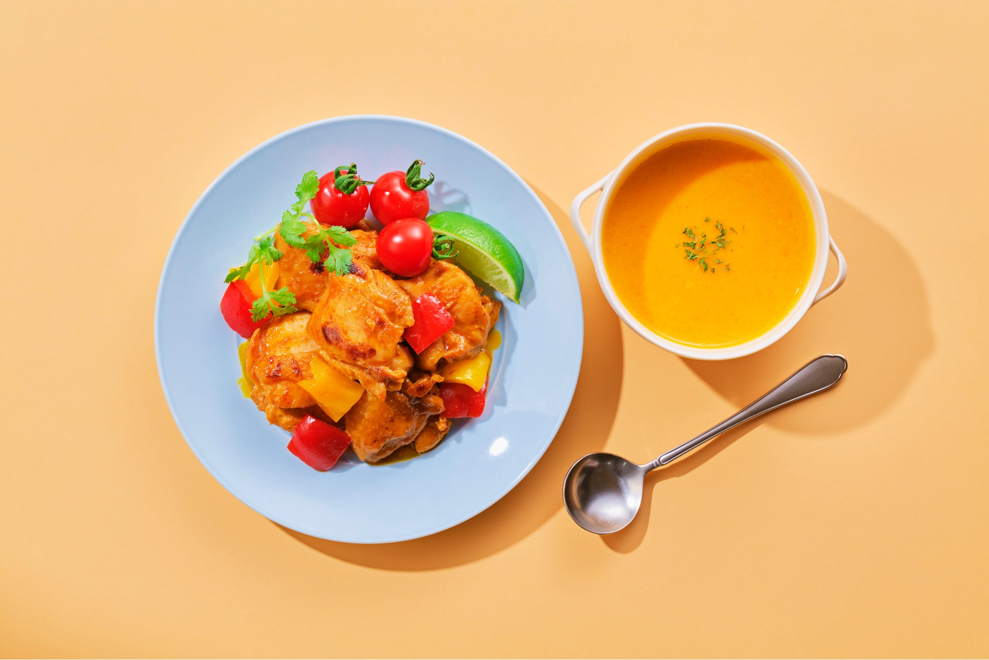 主菜:タンドリーチキン 副菜:かぼちゃのポタージュスープ