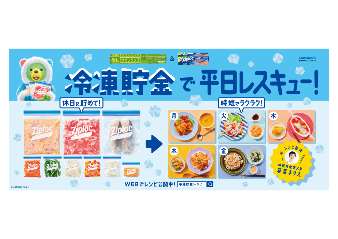 サランラップ®やジップロック®を販売している旭化成ホームプロダクツ株式会社(本社:東京都千代田区、社長:高橋 克則、以下「旭化成ホームプロダクツ」)は、「ゆとりうむプロジェクト」と共同で、食材やおかずを冷凍してストックしておくことで、忙しい毎日の暮らしにゆとりをうむ新習慣「冷凍貯金」を推奨するプロジェクト「冷凍貯金ラボ」を立ち上げ、「冷凍貯金」に関する様々な情報を発信しています。