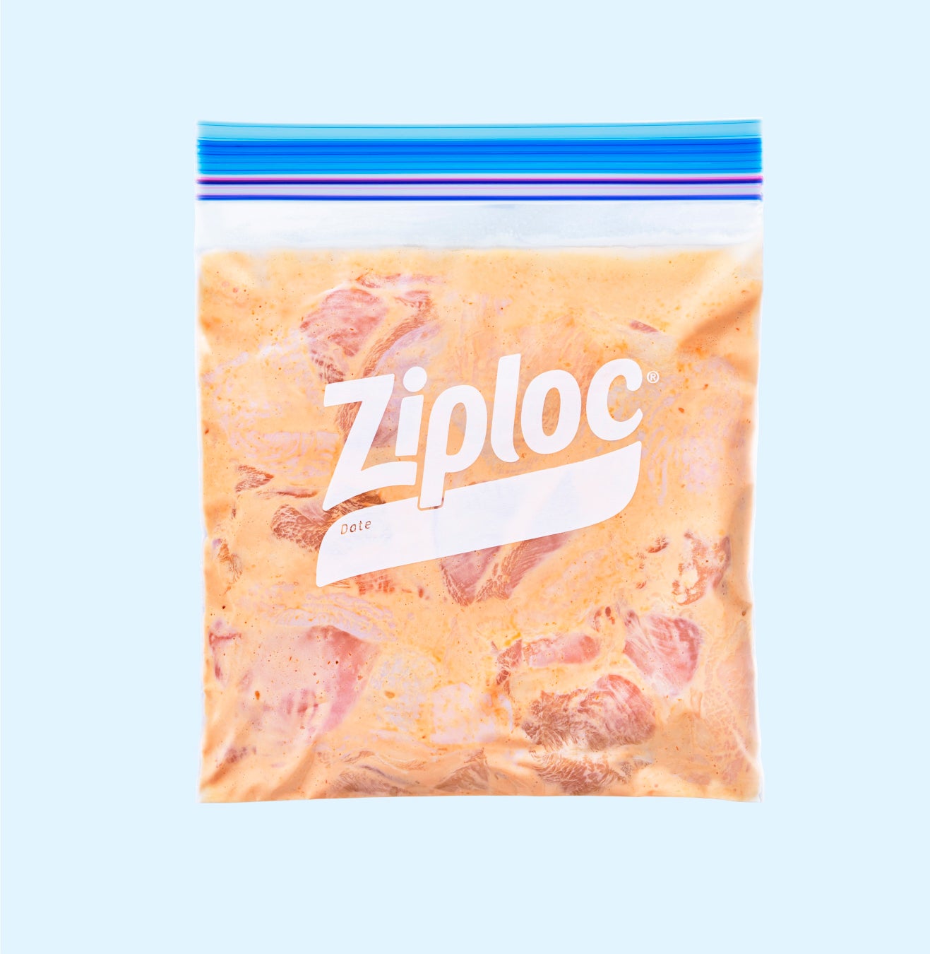 (1)「鶏肉のオーロラソース漬け」にカレー粉を加え、「ジップロック®フリーザーバッグ(M)」の上から