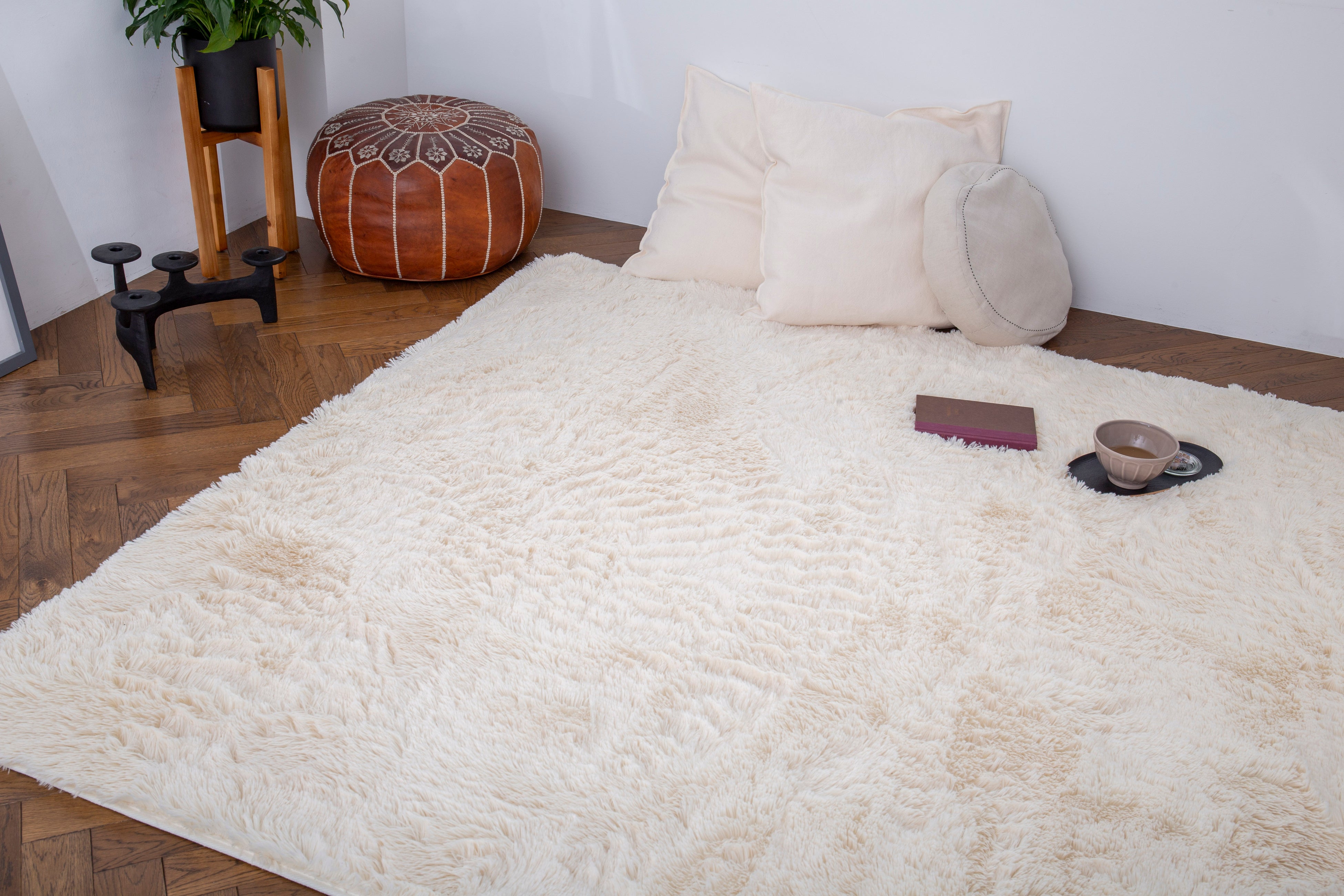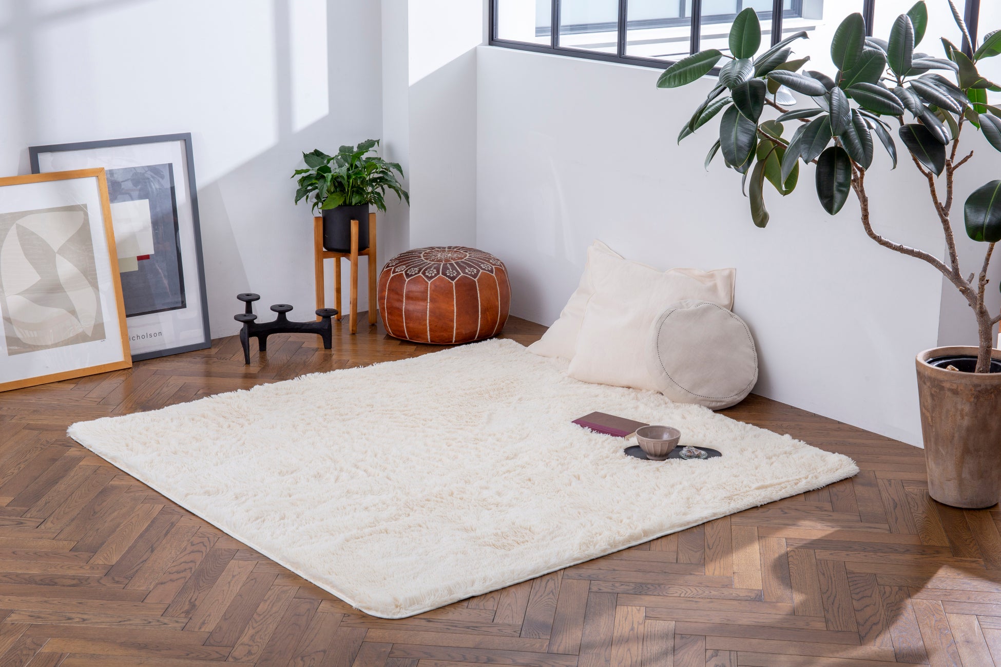 1.ロング毛足40mmの極細繊維を高密度にすることで、とろけるような極上の肌触りと贅沢ボリュームを実現したこだわりのシャギーラグ。優しく包み込むようなふんわり感となめらかな肌触りを生み出し、向きや流れで変化する豊かな表情が楽しめます。ふわふわなのにサラッとした触り心地で、冬は暖かく夏はサラサラ。オールシーズン快適にご使用いただけます。