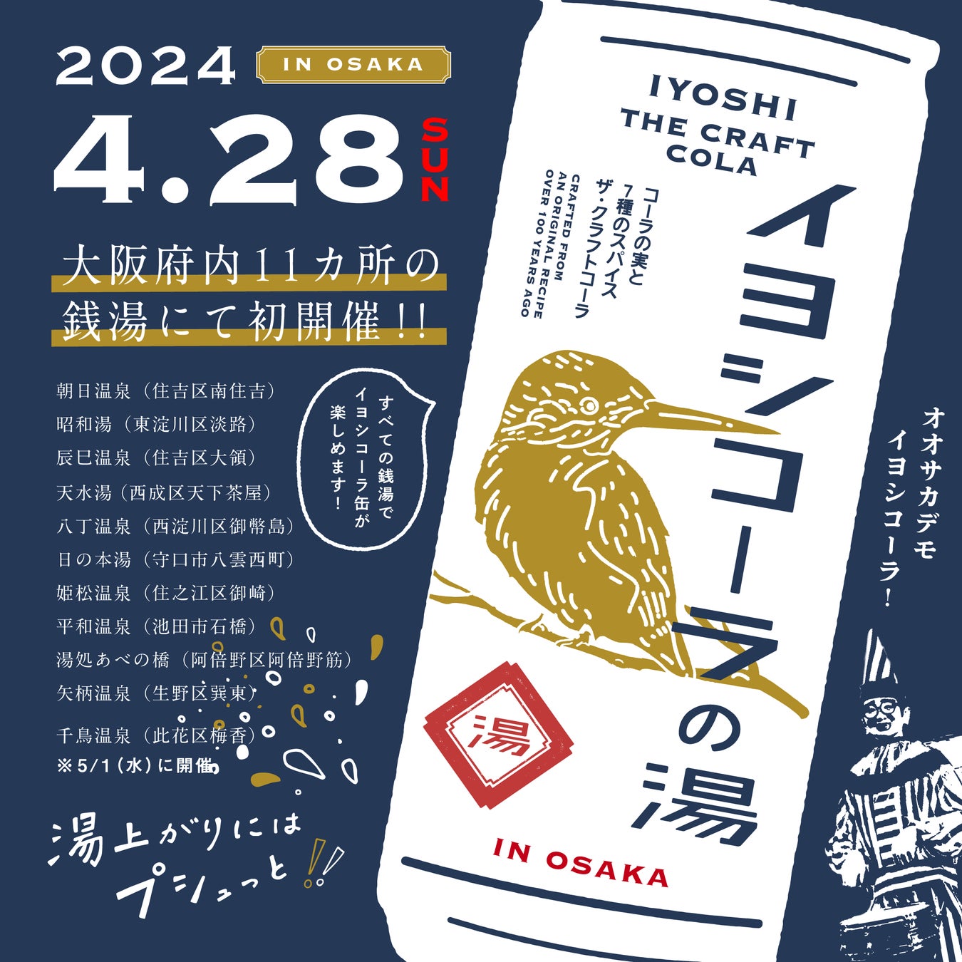 ・2023年4月、イヨシコーラ缶の発売記念イベントとして、約30の銭湯(東京・埼玉・京都・大阪・三重)で実施。