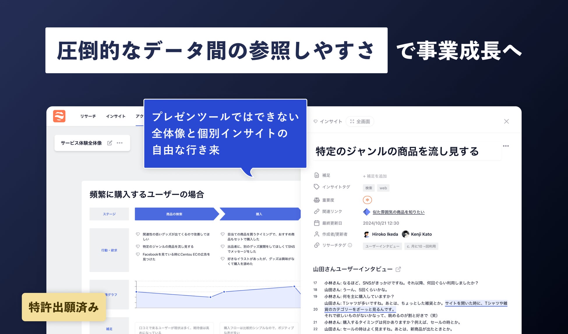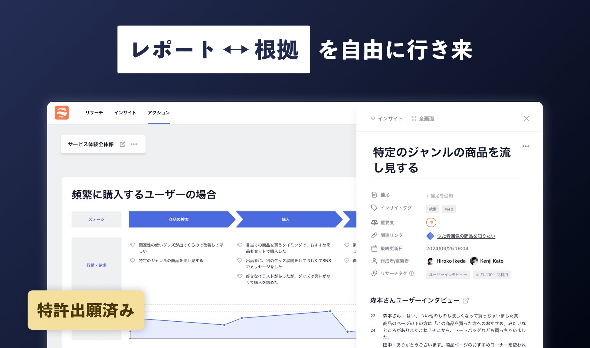 チームでのユーザー理解や、インサイト起点の意思決定を強力に支援