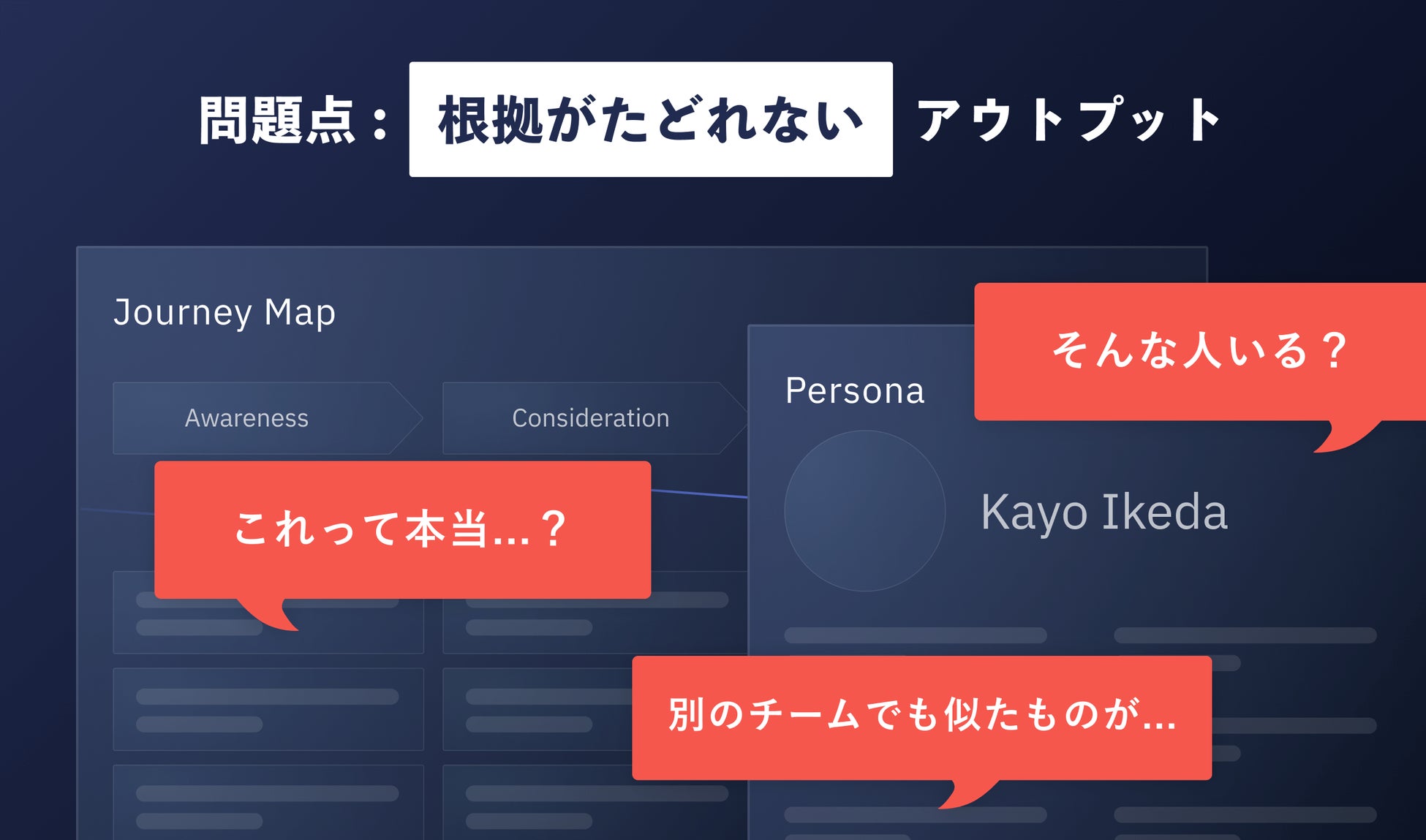 本機能により、「このペルソナって、本当...?」といったこれまでのペルソナやカスタマージャーニーが抱えていた課題を解決いたします。