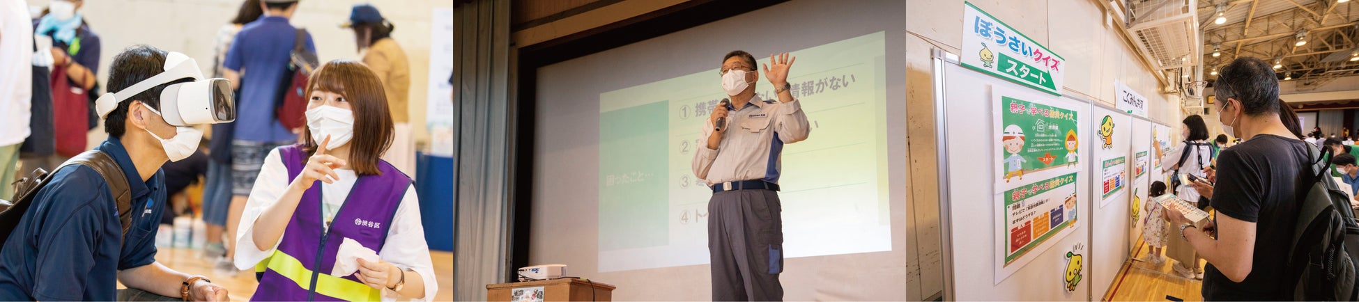 ARを使った避難訓練、災害時に役立つ防災グッズの展示など、多様な防災ブースが並びます。