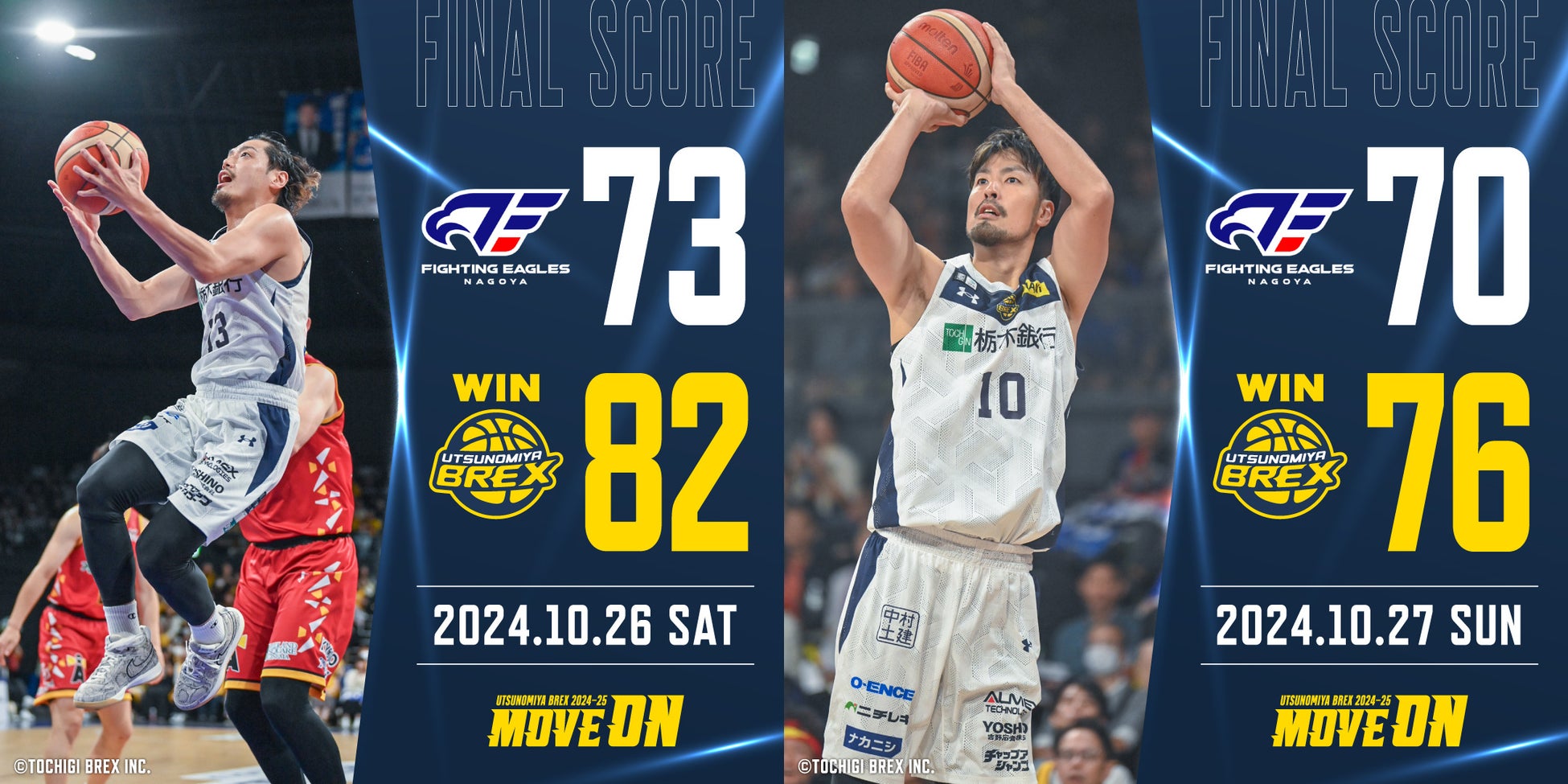 宇都宮ブレックスは、2024年10月26日(土)と27日(日)に豊田合成記念体育館にてファイティングイーグルス名古屋と対戦しました。