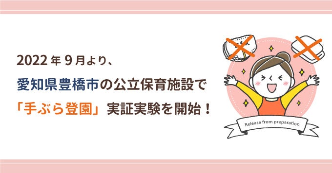 BABY JOB株式会社(本社:大阪府大阪市、以下当社)は、愛知県豊橋市の公立保育施設において、当社とユニ・チャーム株式会社が提供する、保育施設向け紙おむつの定額サービス「手ぶら登園」の実証実験を、2022年9月より2か月間実施することをお知らせします。愛知県内では、初の取り組みになります。
