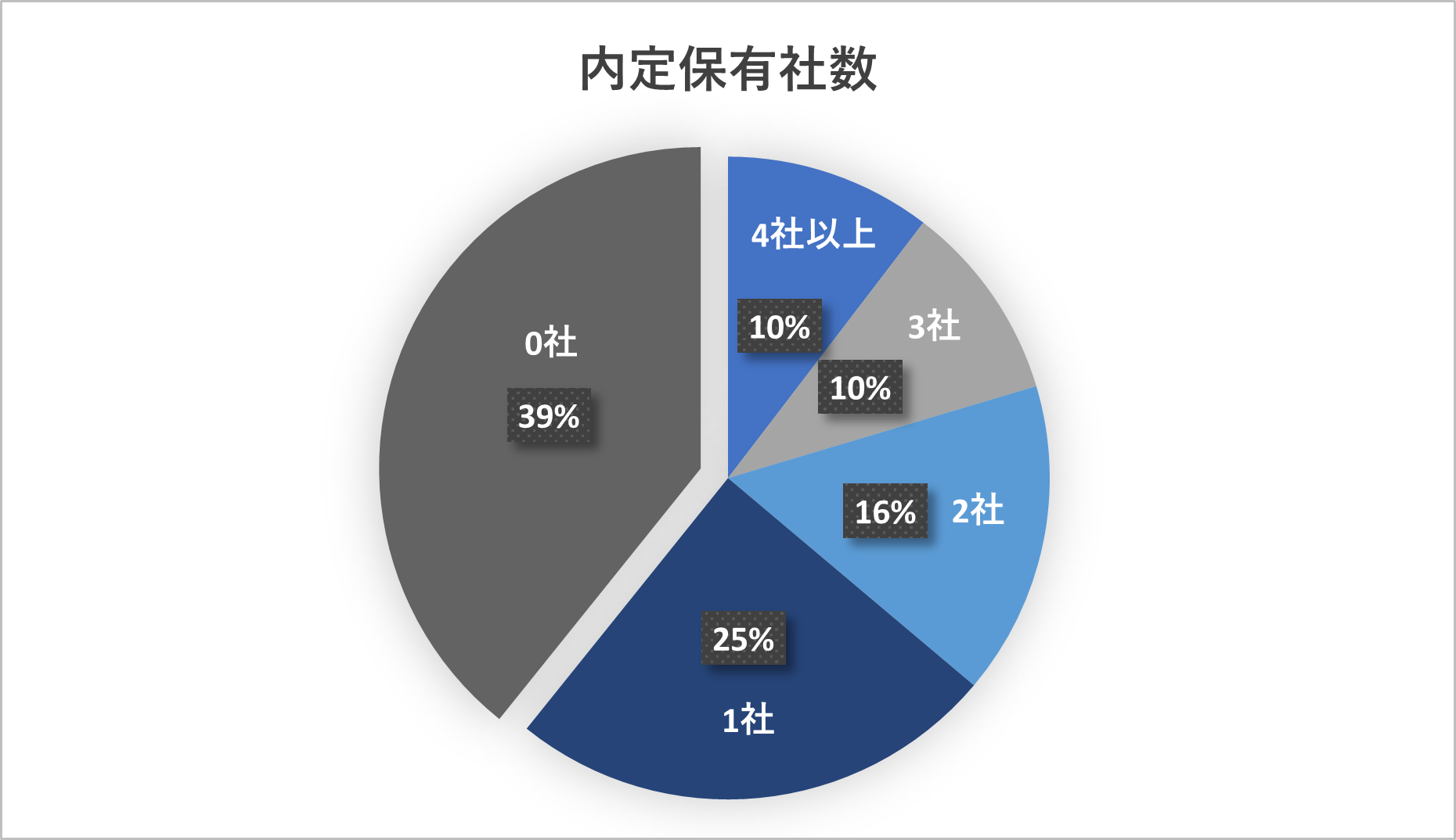 ・現時点の内定保有社数について、全体の6割が「1社以上の内定を保有している」と回答。