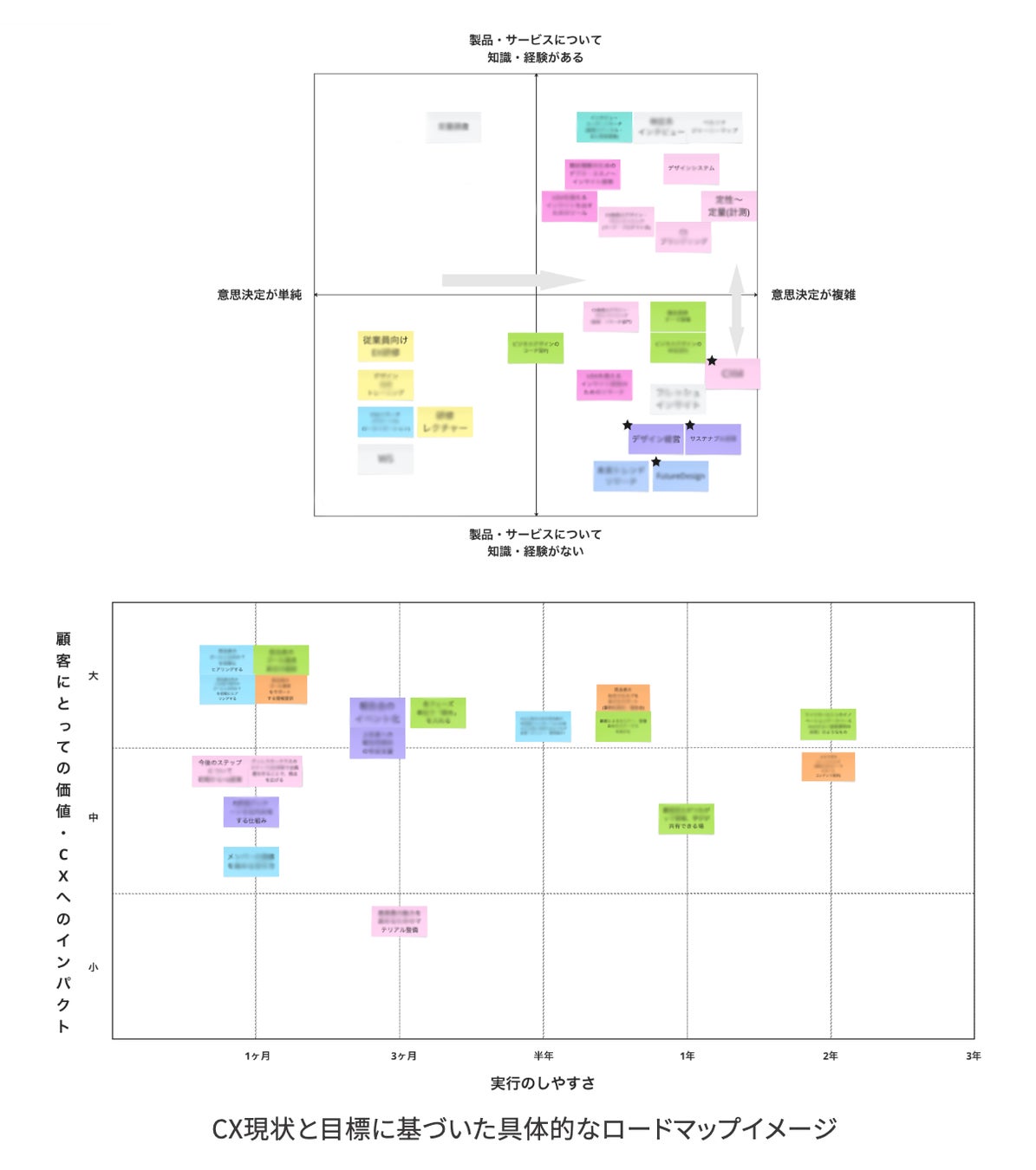 「CXの重要性は理解しているが、具体的にどう進めるかが見えない」という課題に対しては、CX活動のロードマップ作成支援を行っています。