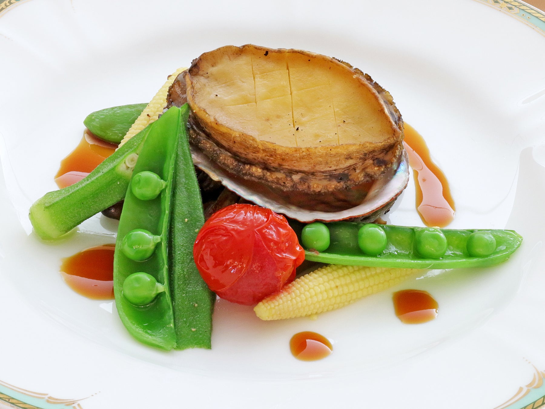 蝦夷鮑のロースト 焦がしバターと夏野菜添え