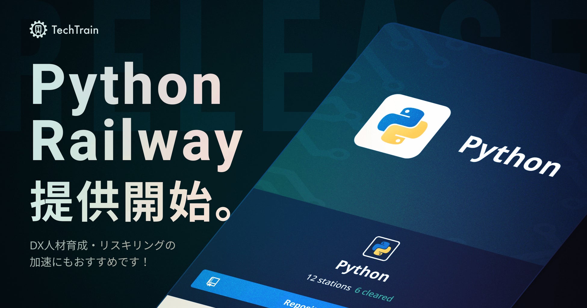 TechTrain、DX人材育成に特化した初学者向け教材「Python Railway」提供開始。教材総数は17分野200問を突破。