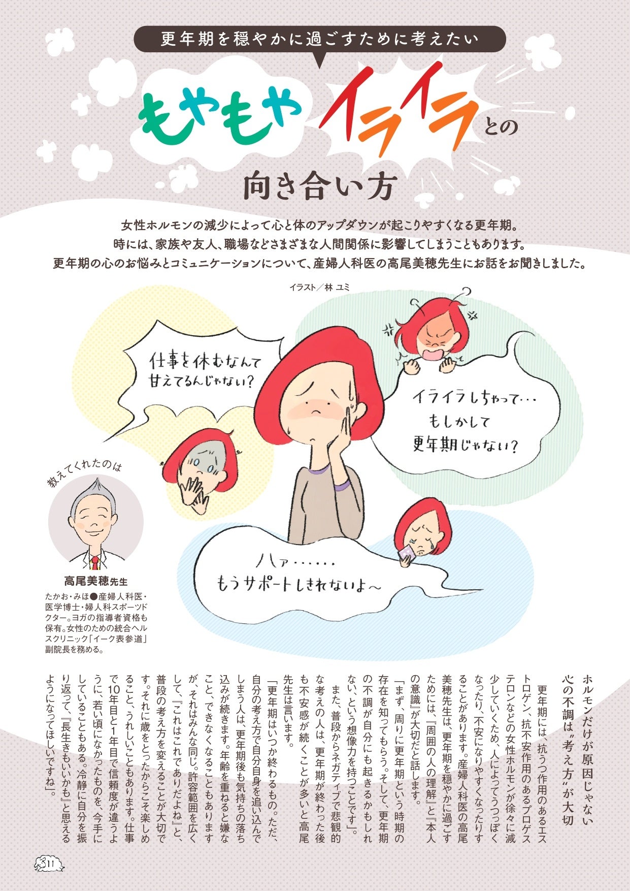女性ホルモンの減少によって心と体のアップダウンが起こりやすくなる更年期。更年期の心の悩みとコミュニケーションの取り方について、産婦人科医の先生に教えてもらいます。