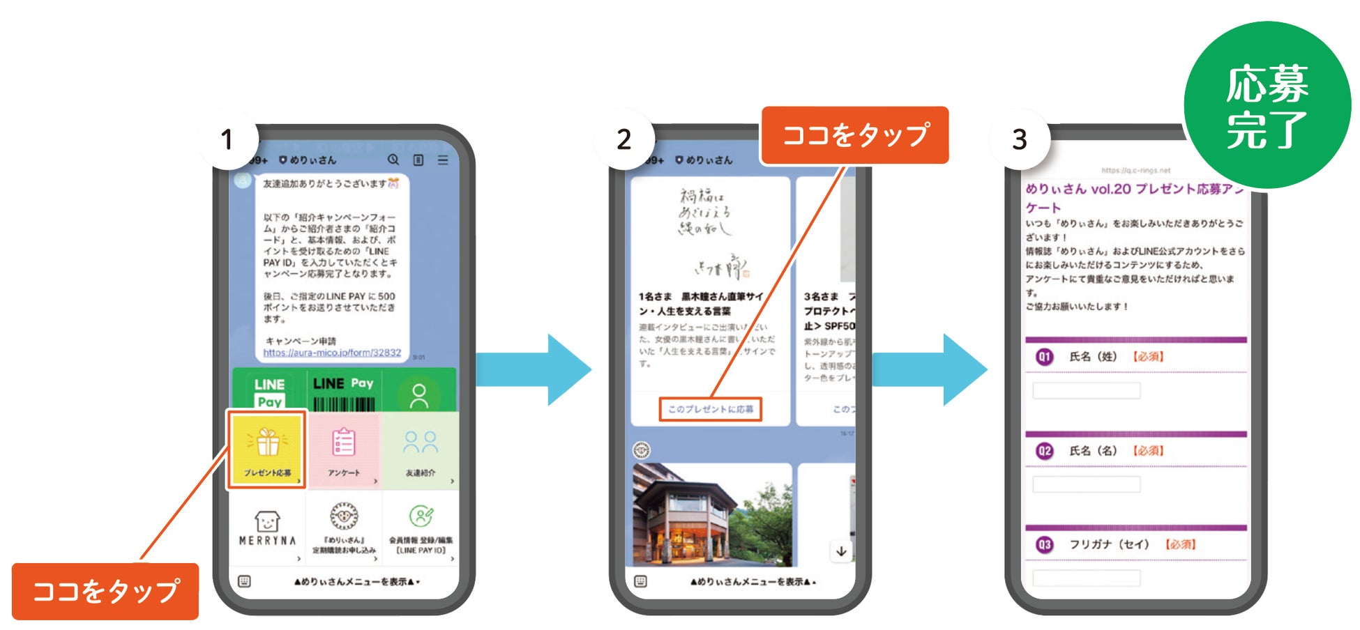 プレゼントの応募は『めりぃさん』公式LINEアカウントの友達追加&アンケート回答で応募できます!
