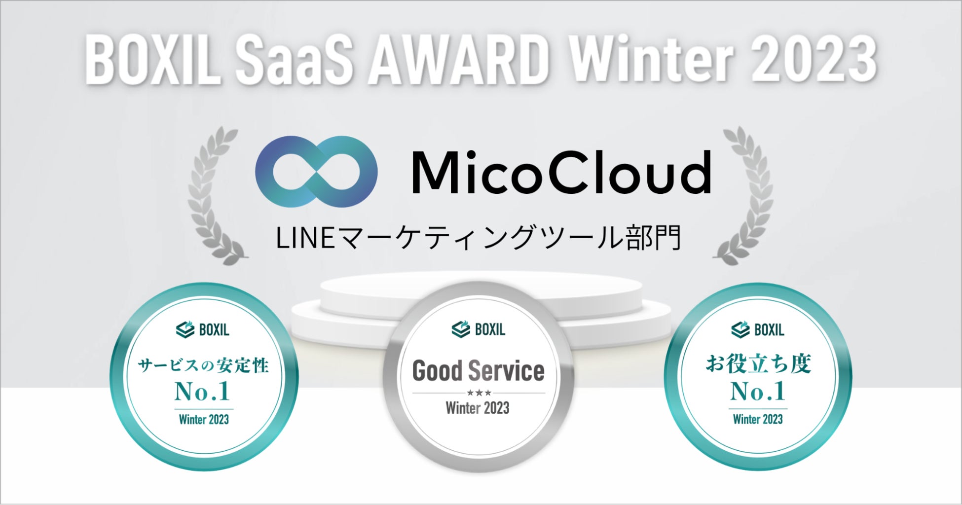 MicoCloudが「BOXIL SaaS AWARD Winter 2023」LINEマーケティングツール部門 「Good Service」「サービスの安定性No.1」「お役立ち度No.1」に選出