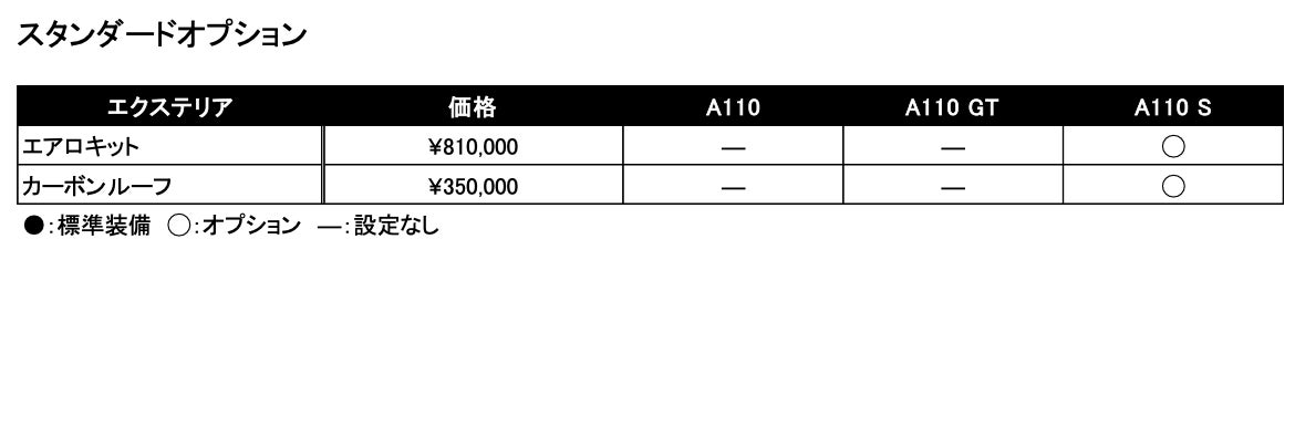 標準装備の仕様変更に伴い、アルピーヌ推奨オプションをあらかじめ組み合わせたエッセンシャルパッケージの内容も変更され、新価格となります。