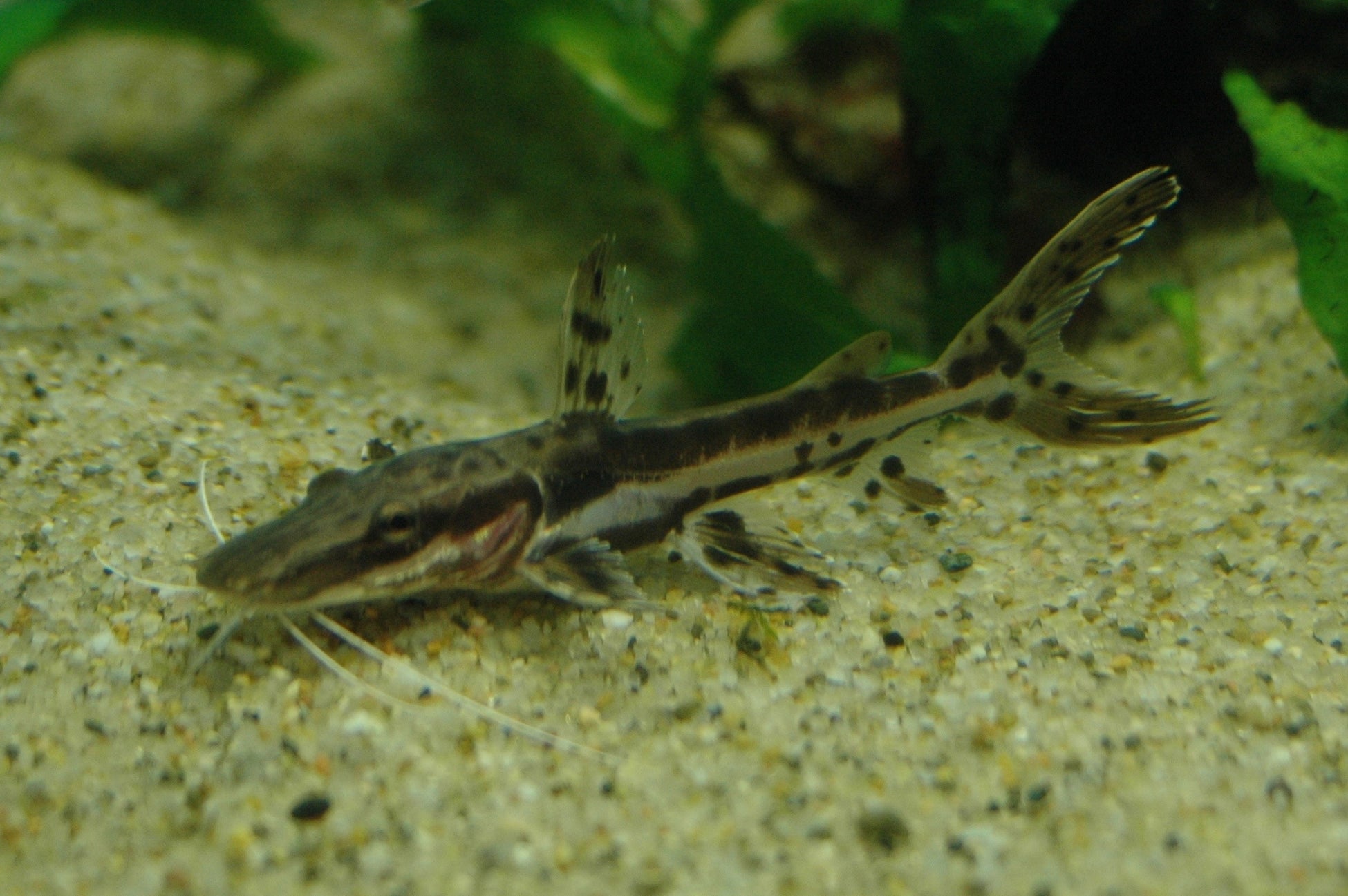 トラのような模様が現れる特徴を持つ。模様がわかる成魚は地下1階「世界の大河から」にて展示。