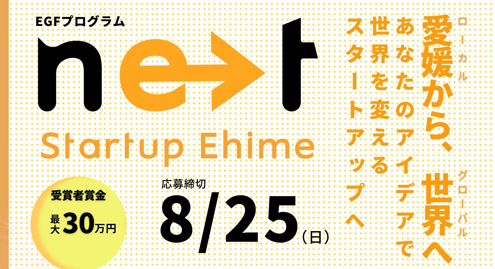 新しい価値を生み出す愛媛発のスタートアップの創出を目的とした起業家育成プログラム「NEXTスタートアップえひめ」を実施。応募締切りは8月25日(日)まで。