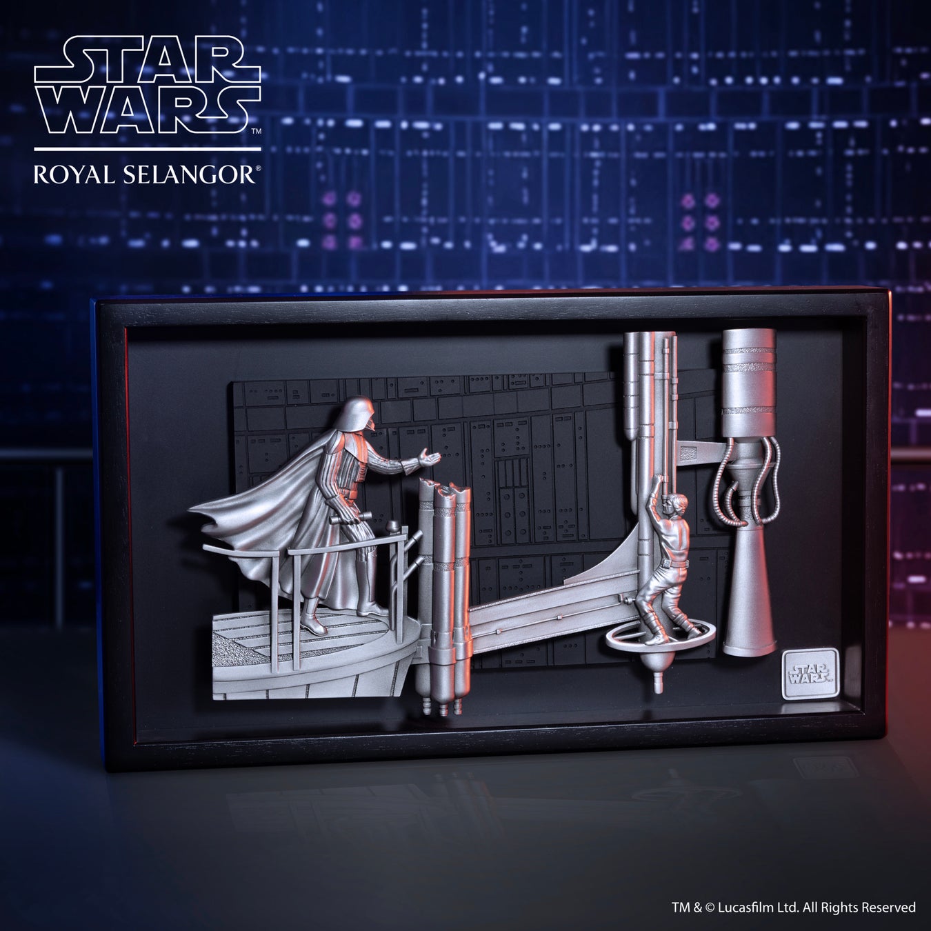 封じ込められた父の愛情と、息子としての葛藤が交錯する瞬間をピューターの卓越した造形で見事に再現。ピューターならではの深みのある重厚感と美しさが、スター・ウォーズ史上最も衝撃的で象徴的なシーンを永遠に刻みます。