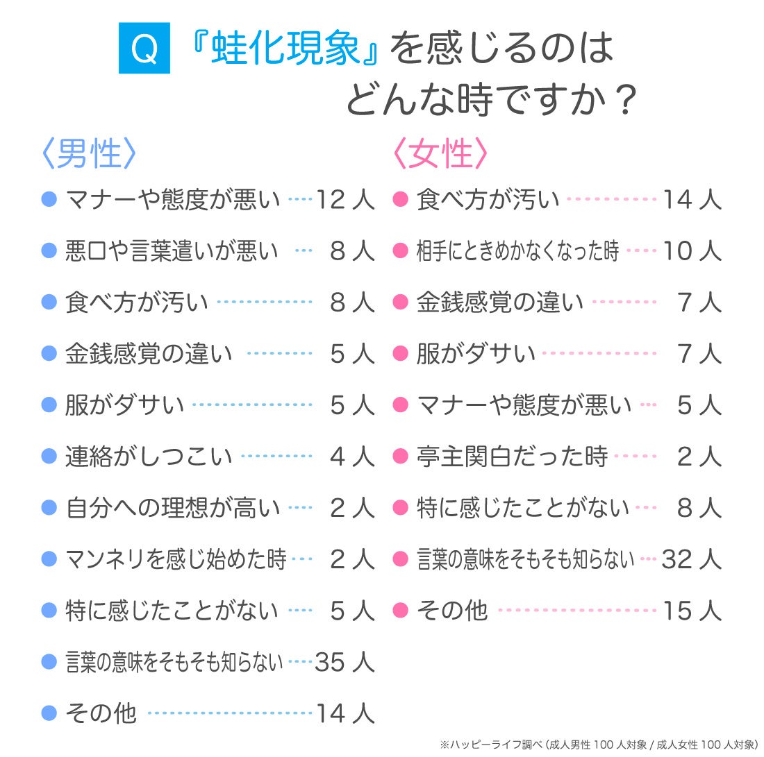 蛙化現象の意味や由来とは?原因となった行動について男女100人にアンケート