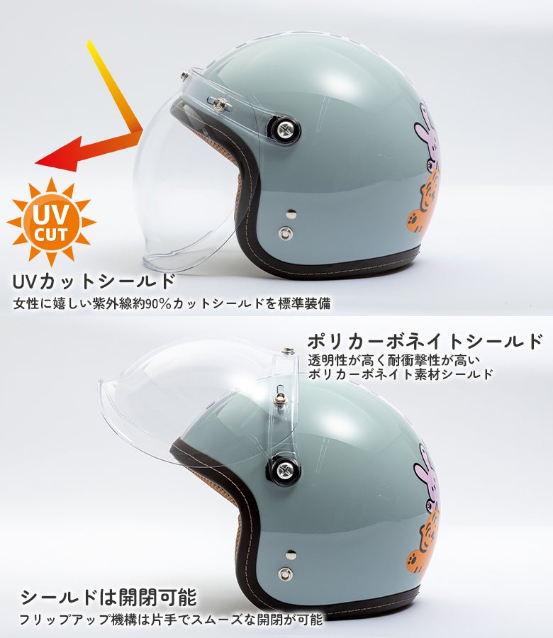 標準装備のシールドは紫外線約90%カットシールドを使用。