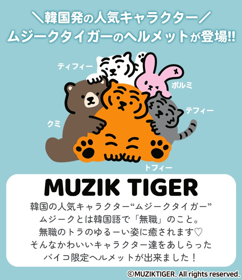 【韓国発人気キャラクター】MUZIK TIGER(ムジークタイガー)デザインのバイク用レディースジェットヘルメットを2025年6月に販売!予約受付中!