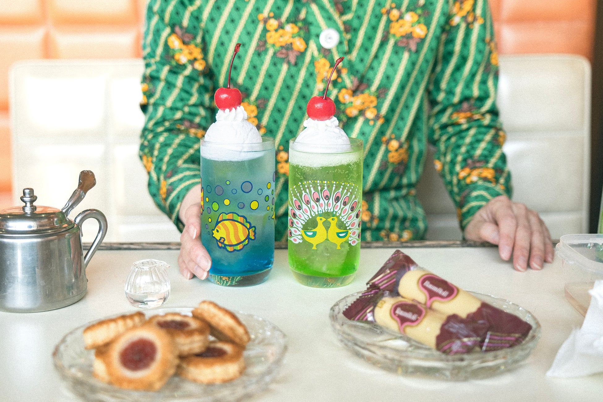 ラインナップは「熱帯魚」「クジャクのおしゃべり」の2柄。昭和当時の「魔法のグラス」の中でも代表的な柄であり、公式Instagramで特に人気の高かった2つのデザインを復刻しました。