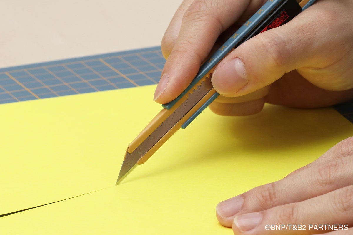今回のコラボ商品は、オルファがロゴをプレイスメントしている「折紙サイクロン」のイメージをデザインに落とし込んだ細工用カッターナイフと、A3サイズ対応のカッターマットです。仕事に、趣味に、日常に、様々なシーンにおける“切る”を、折紙サイクロンと共にサポートします。