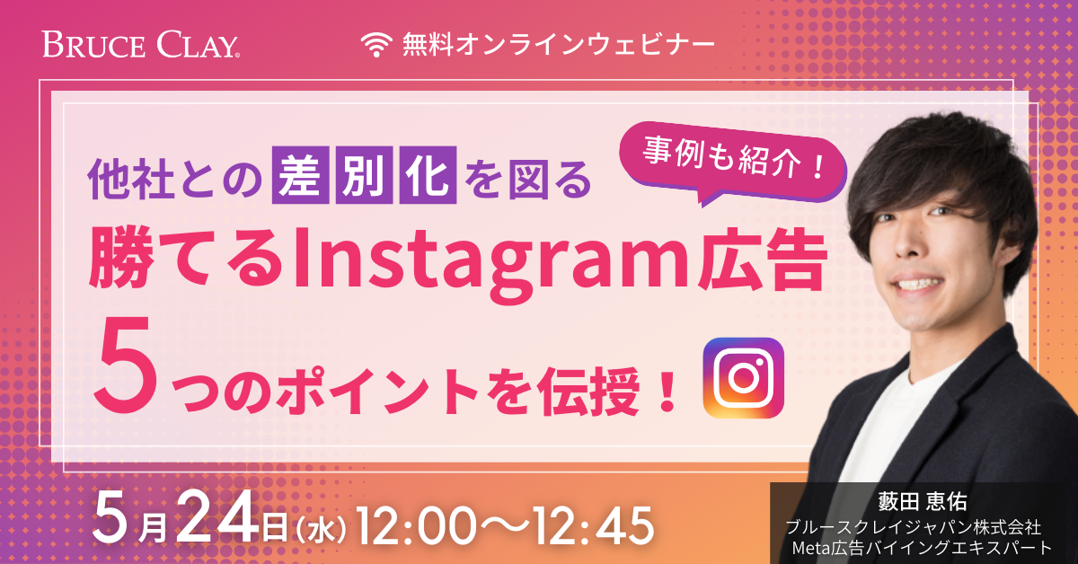 参加無料・申込みはこちら:https://m.bruceclay.jpn.com/seminar/sns_20230524/